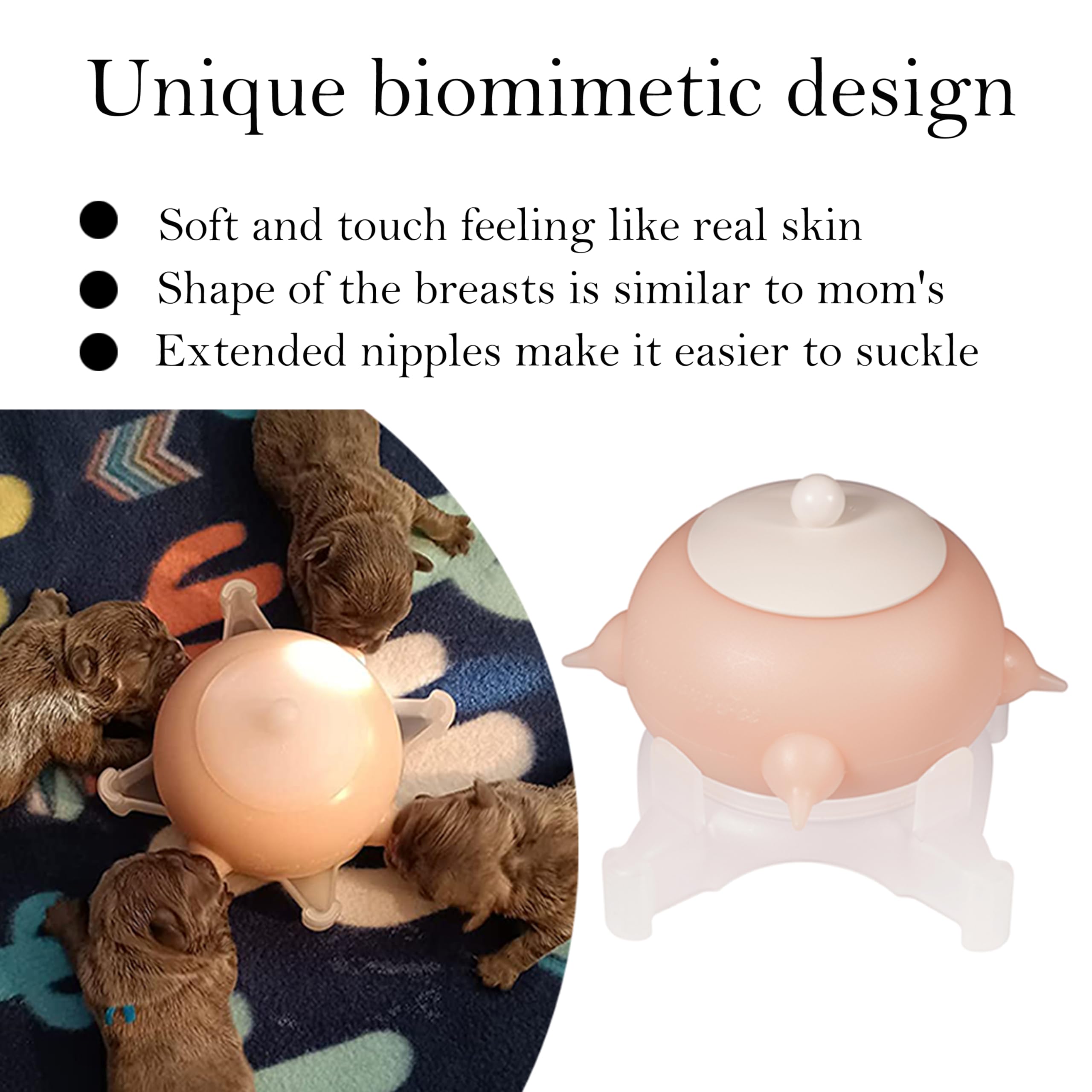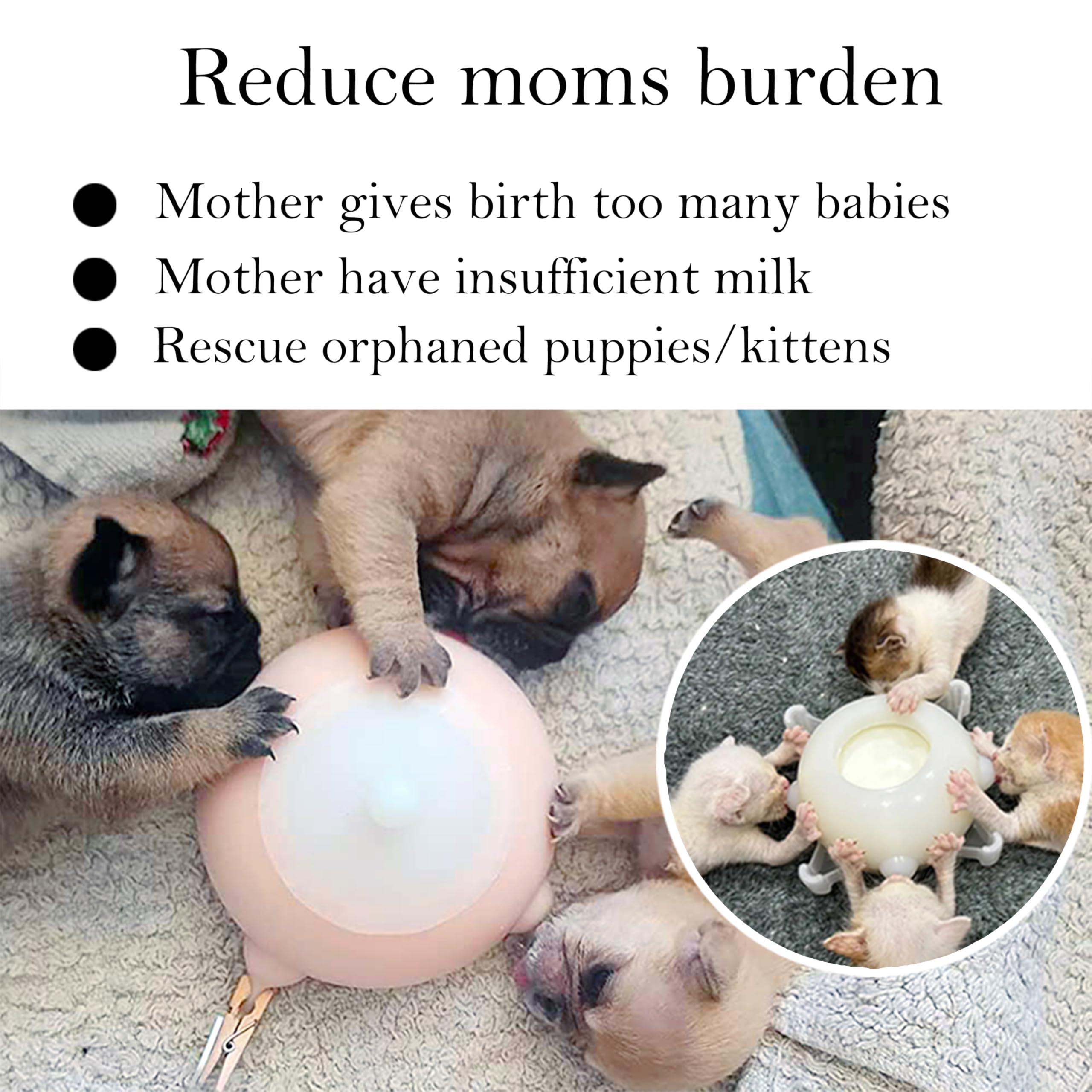 puppy feeding station: It imitates the size of its mother's breasts and the real nipple touch, making the puppy feel like the milk feeder is its mother. It is a special kind of puppy's bottle. Incorporating puppy formula milk replacement can simultaneously feed multiple puppies, reducing the workload of breeders