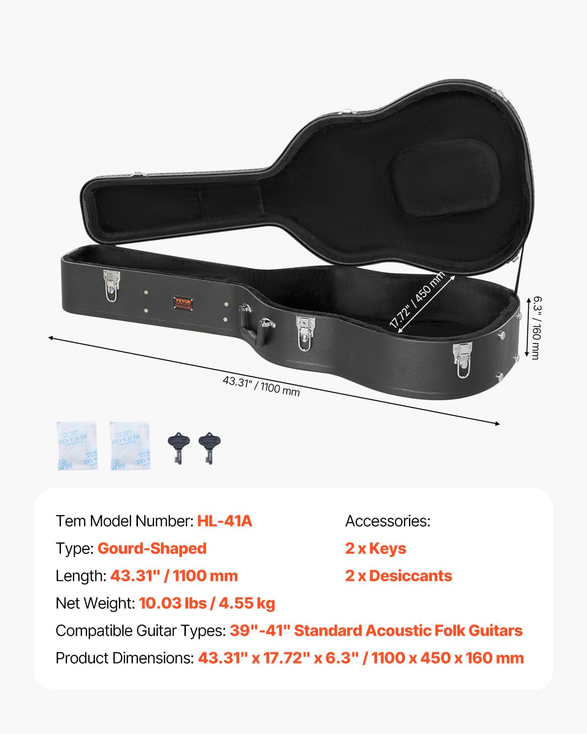 Suitable for Acoustic Guitars: This gourd-shaped guitar hard case, with a total length of 43.31", is greatly suitable for 39"-41" acoustic guitars! Please check the size to see if it is suitable for your guitar when purchasing.