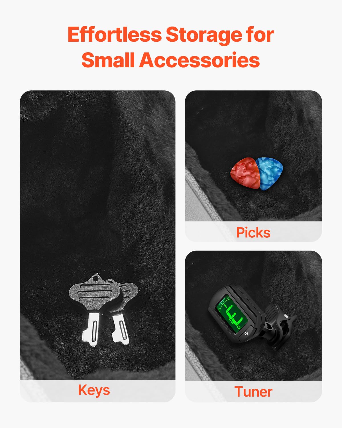 Accessory Compartment: The interior of this hard shell guitar case is designed with intimate accessory compartments. It is convenient for storing accessories such as picks and strings, so that your guitar accessories are well organized.