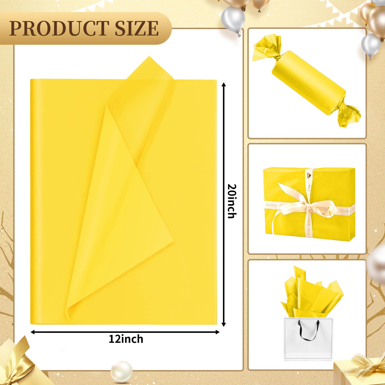 【Practical Size Design】- The size of the yellow wrapping tissue paper is W 14" x H 20" (35cm x 50cm). Our yellow tissue paper for crafts is the most widely used size in applications. No need to crop, you can use it directly.