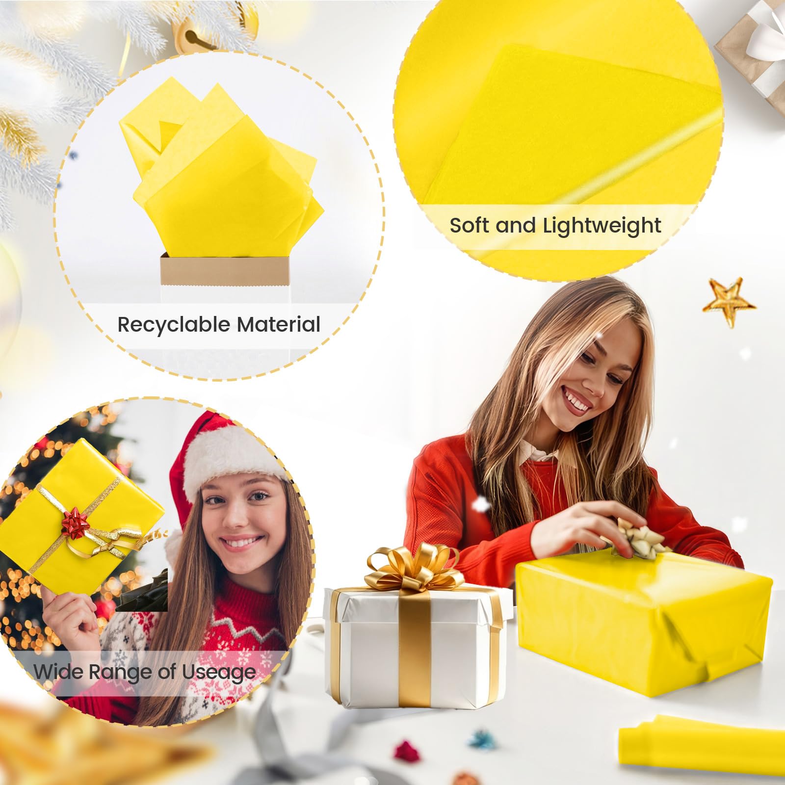 【Versatile Color】- You will get 30 sheets of yellow tissue paper. The color of yellow paper is an upgraded version, which can make your gift more exquisite and impressive.