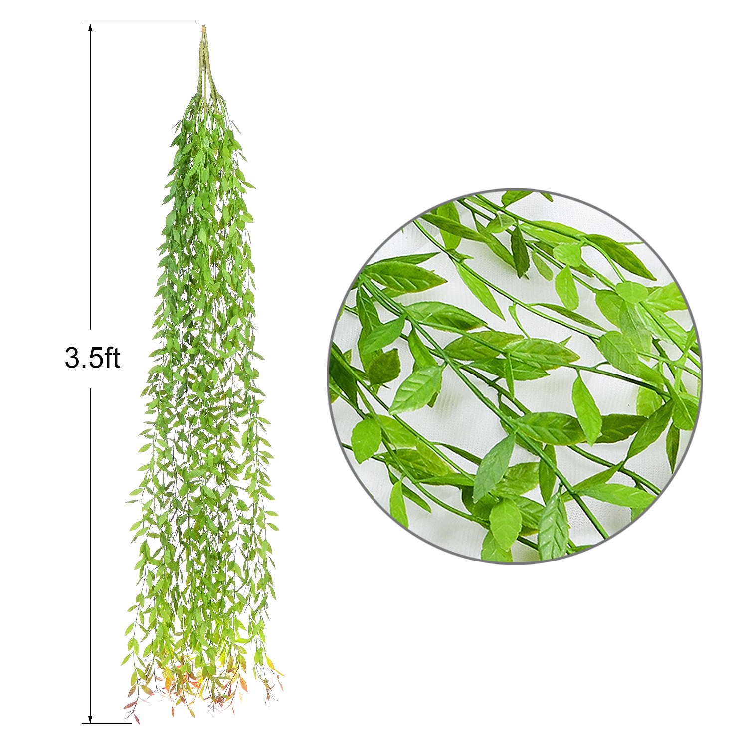 Lvydec Artificial Garland Plants This item is made of artificial leaves vine. The vivid texture makes it looks like real plants. Let you feel yourself in the nature when this item is ornamented in your house or garden. It's durable and washable and great decoration for home, bar, Coffee andamp; book store, garden. Features - Color: As pictures showed. - Material: Plastic - Length: 3.5ft each branch, total 21ft. - Naturalistic look. looks like real plants. - Package Content: 6 x Artificial Wicker Rattan Vine - Close to nature ,widely use, durable and washable - Great for wedding, party, outside and festival decoration. Package Contents: 6 pcs fake willow green vine