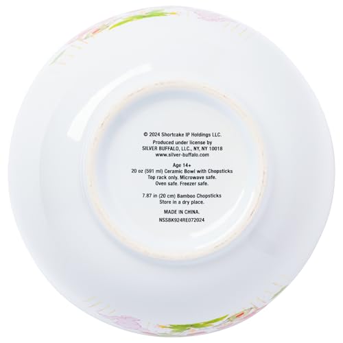 Enjoy your favorite meals in the sweetest ramen bowl! Themed bowl features Strawberry Shortcake and Custard in an adorable garden. Written above the beloved characters is “A Little Love is All it Takes.” Bowl is white with a pink interior. Microwave safe. Bowl is TOP RACK dishwasher safe ONLY. Chopsticks and spoon are HAND WASH ONLY. This 20 ounce ceramic bowl comes with a pair of polka dot chopsticks and an adorable pink spoon. Enjoy your favorite meals in this themed dish! This ramen bowl set, with its nostalgic designs, makes a great gift for your favorite Strawberry Shortcake fan. Showcasing these beloved characters, this item is perfect for birthdays, holidays, and other gift exchanges. Take a dive into the fictional world with Silver Buffalo! Silver Buffalo provides fans with official merchandise from their favorite characters. Working alongside licensors and brands, we create unique and imaginative products which are designed with great care and detail. Silver Buffalo aims to connect fans to their favorite cartoon characters, superheroes, movies, tv-series, and more. Celebrate your fandom!