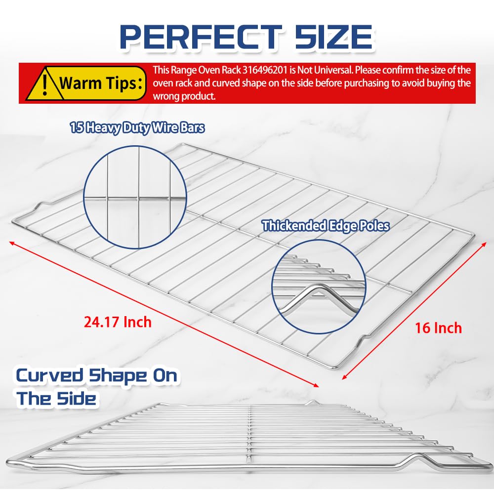 ✔ WORTH BUYING - Range Oven Rack 316496201 is designed to fit in the oven cavity and provide a stable platform for baking, roasting, and broiling. If you are not sure whether the product is compatible with your stove, please feel free to contact us, we will help you confirm it.