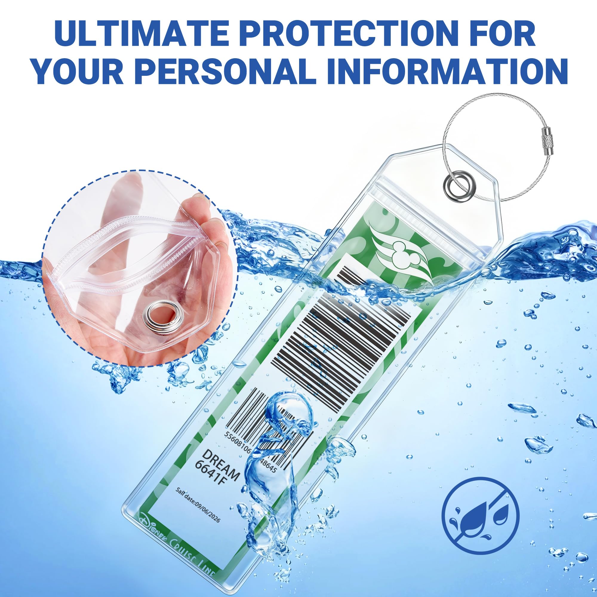 Cruise Essentials: Top seal ensures waterproof & clear luggage tag in any weather condition; Made of heavy-duty plastic and stainless steel hardware, never worry about losing or falling off