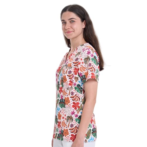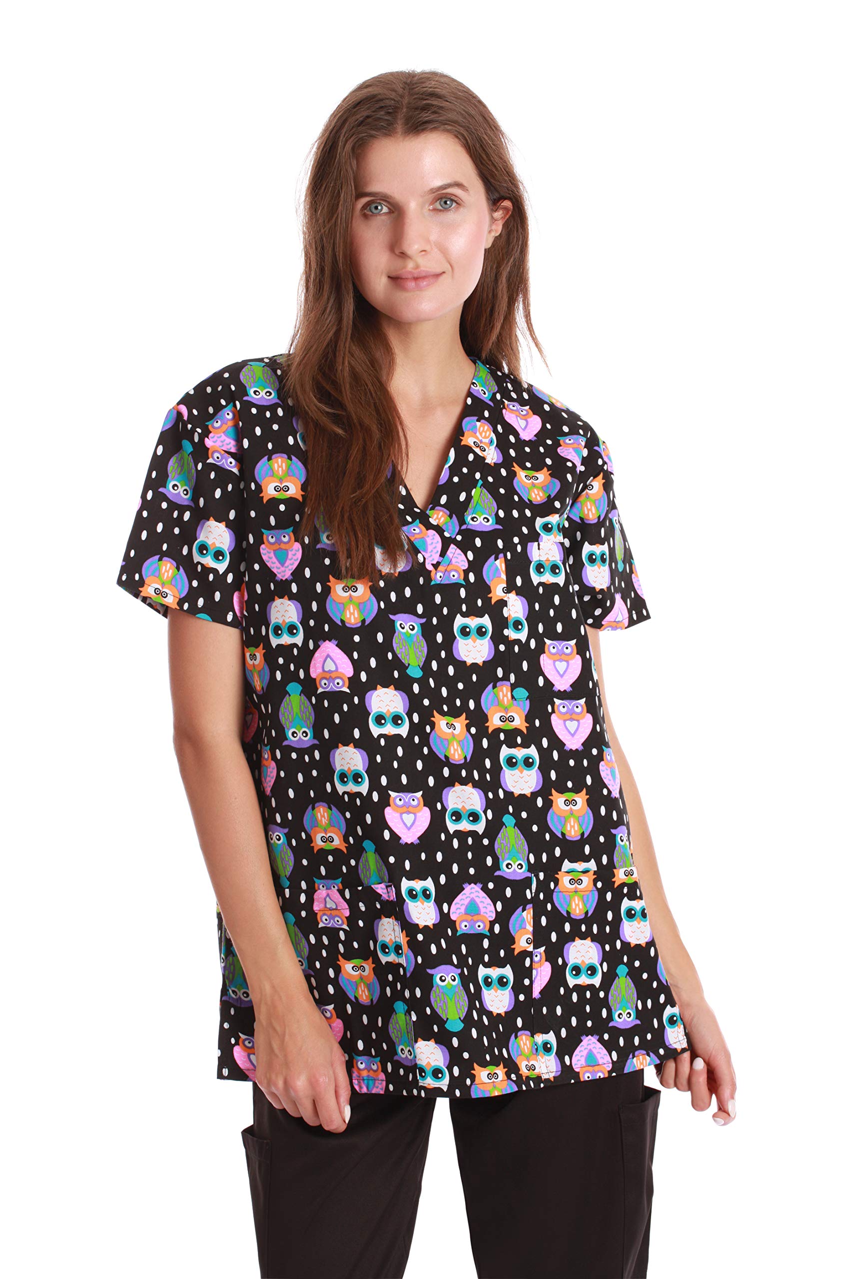 Lots of Pockets: Women's Patterned Scrubs top includes 2 front patch pockets and 1 chest pocket.The pocket space is big enough,c convenient storage for your belongings while you work.