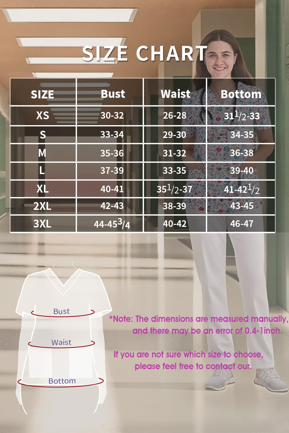Garment Care: Our medical scrubs tops are made of wrinkle-resistant fabrics,machine wash and tumble dry wrinkle-free.Not easy to fade and can be machine washed in cold water. The recommended water temperature is not more than 40 degrees.