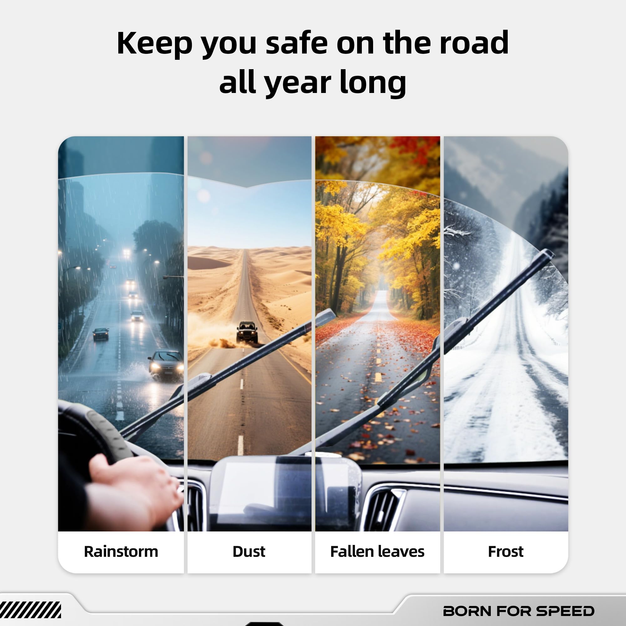DURABILITY & PERFORMANCE: Premium rubber compound and corrosion‑resistant frame deliver smooth operation, streak‑free wipes, and extended service life in all weather and seasons.