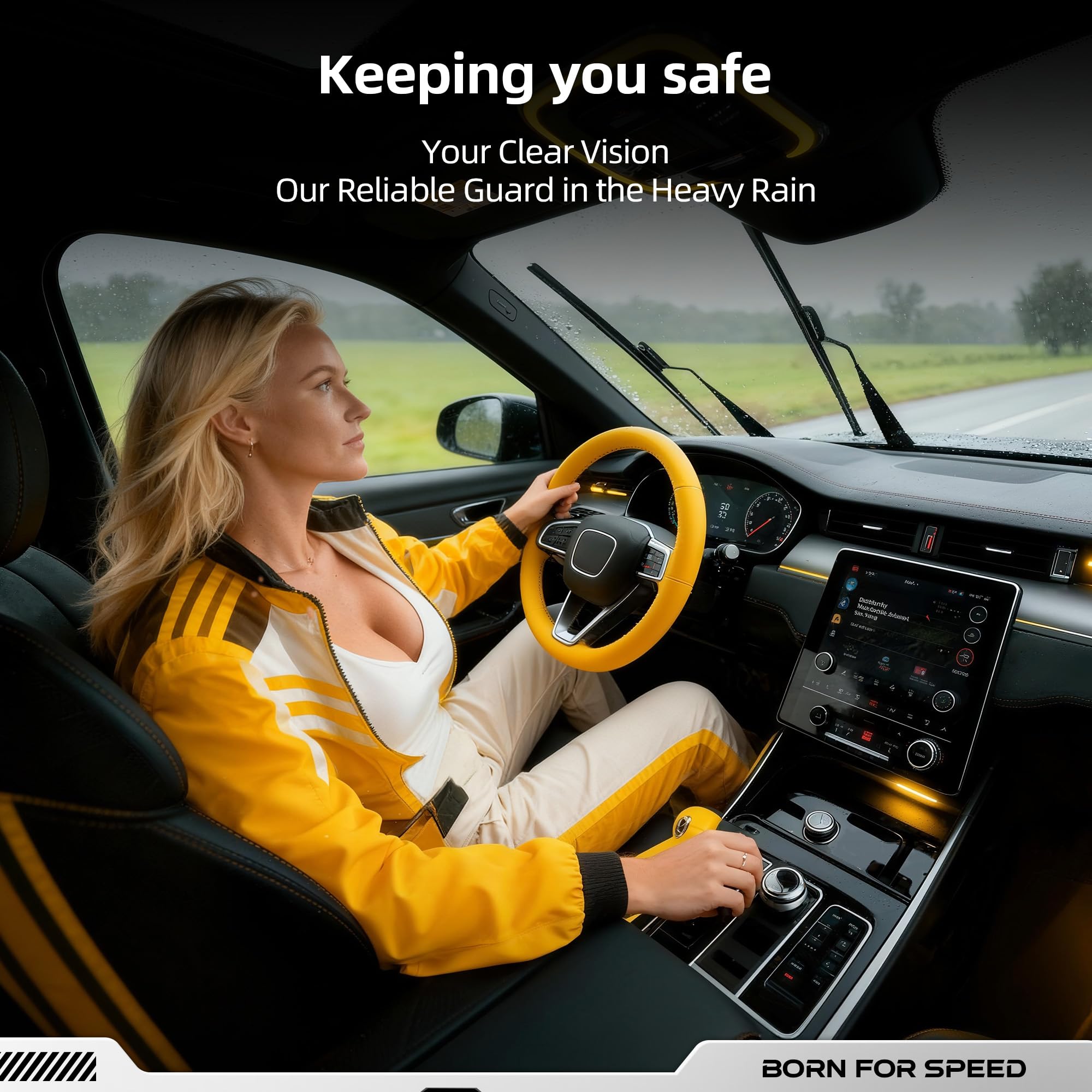 OPTIMUM VISIBILITY: Precision‑engineered spoiler maintains constant windshield contact at high speed—ensuring clear vision in rain, snow, sleet or mist.