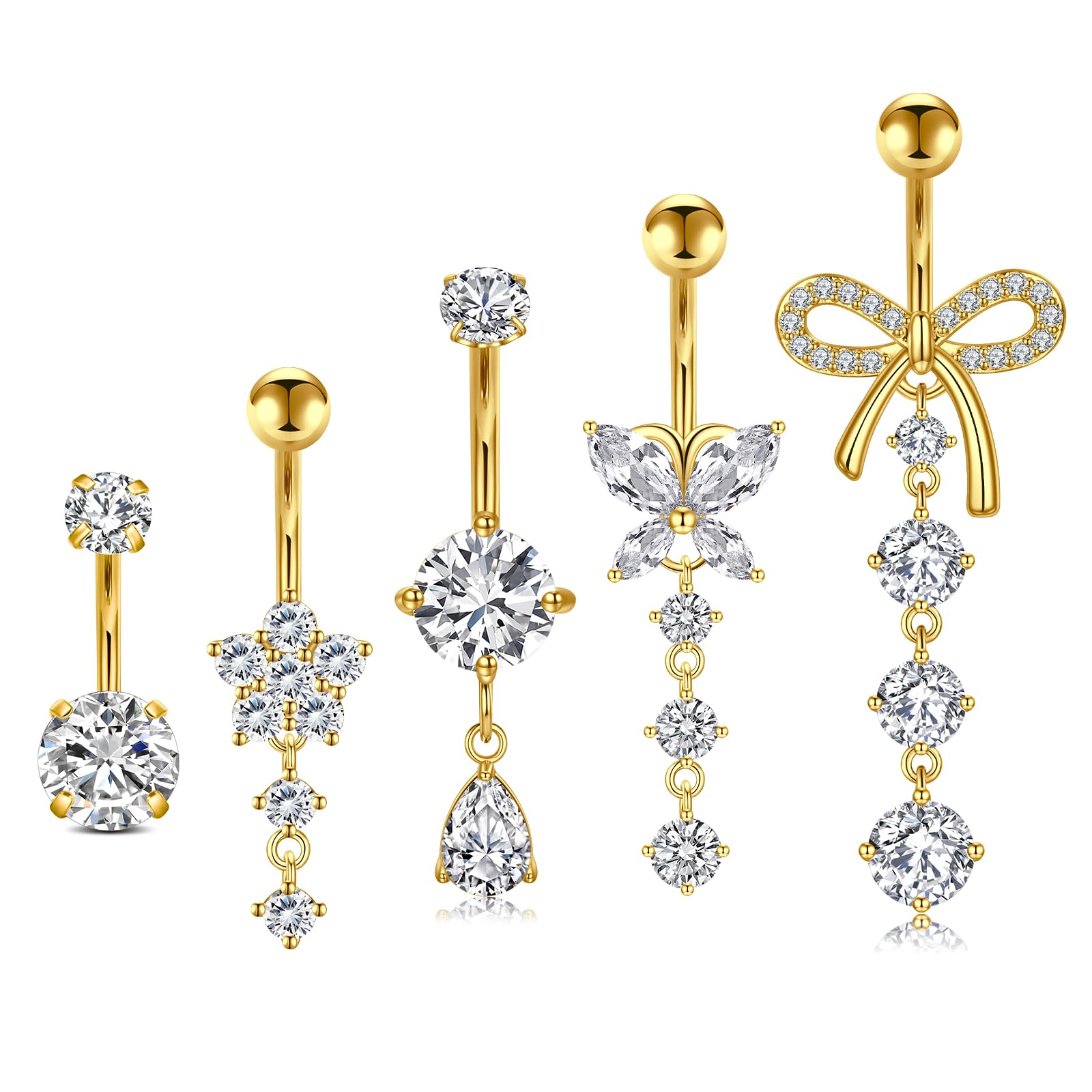LONG LASTING GOLD TONE FINISH】 Gold-tone body jewelry often fades quickly, but our navel rings are crafted with a durable finish and smooth stainless steel barbells. They maintain their elegant shine through daily wear without easily losing their color or tarnishing.