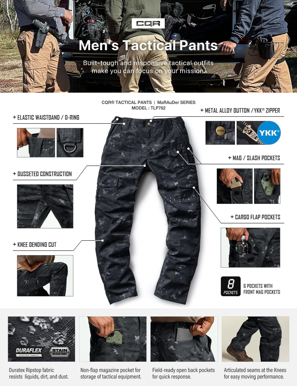 Tactical Storage: Multi-purpose cargo and utility pockets provide organized carry for tools, gear, and everyday essentials