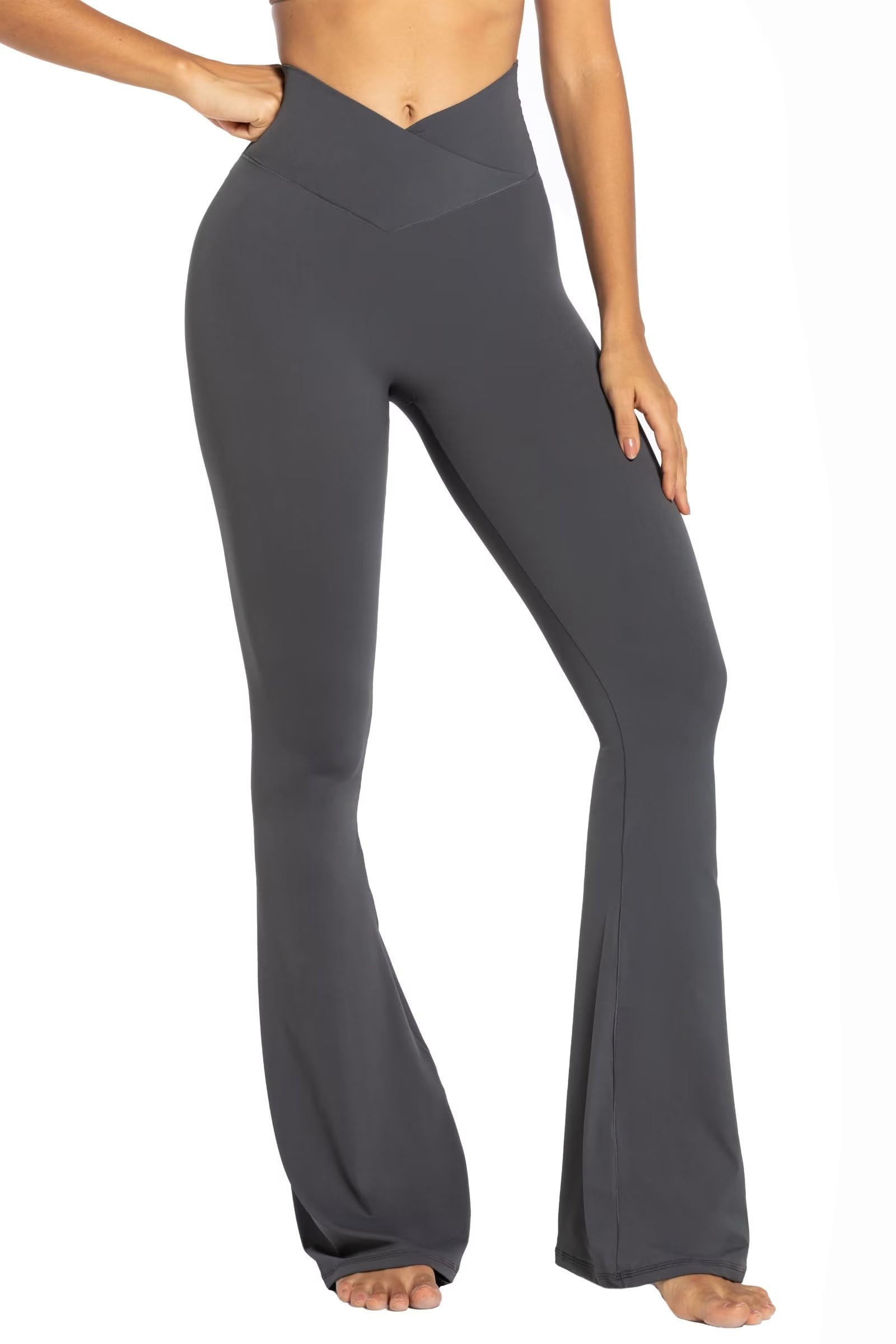 Crossover Flare Leggings with No Front Rise Seams: We took one of your favorite pieces and put every girl's favorite spin on them - NO FRONT SEAM! We know how much you all love our flared leggings and we wanted to make them even chicer