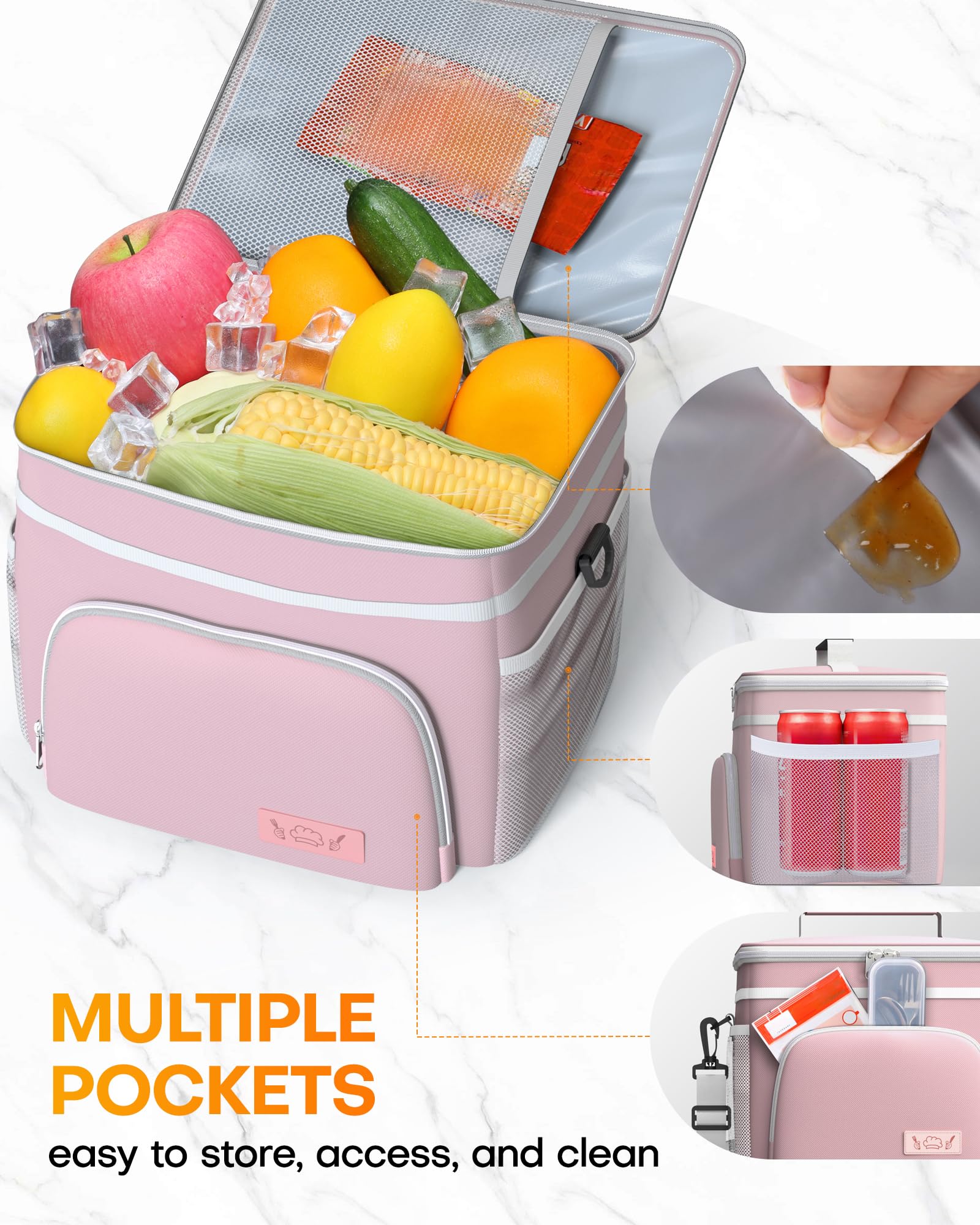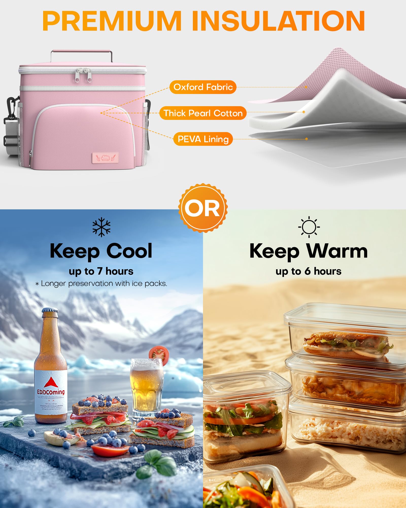 SUPERIOR INSULATION: The HOTOR lunch bag for women features an excellent 3-layer insulation system: the outer layer is 600D sturdy Oxford cloth, the middle is 3mm thick and insulated pearl cotton, and the inner is food-safe PEVA material. This cooler bag ensures your meals stay at the perfect temperature for hours, keeping cool for up to 7 hours and warm for up to 6 hours.