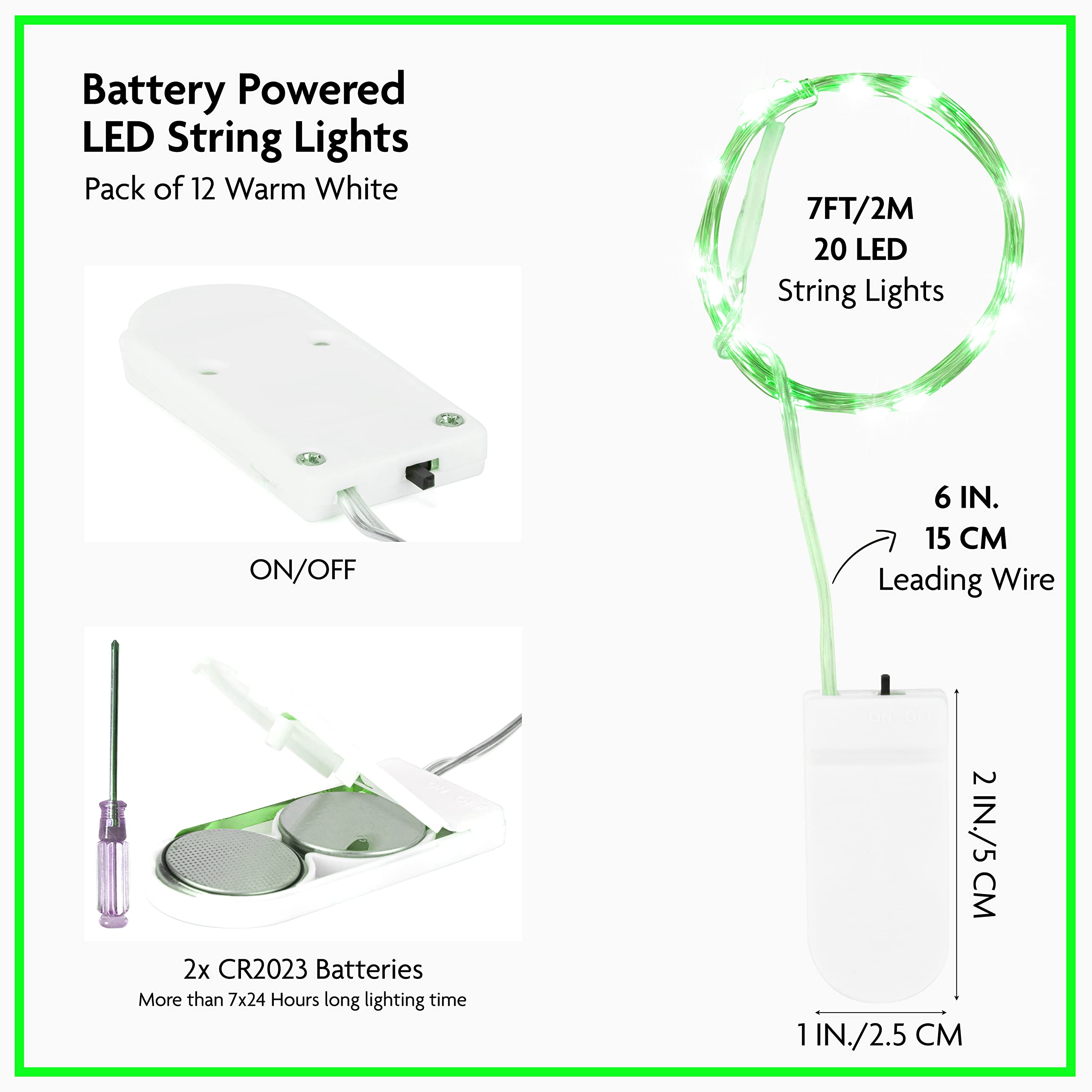 Flexible and Versatile: 12 packs of 20 LED fairy lights are made of 7ft long flexible copper wire, they are very soft and can be easily shaped into the shape you want, when you place them in a glass bottle these fairy lights look like Many beautiful fireflies can also be wrapped around stair railings, trees, railings, fences, tents, etc. to decorate your party