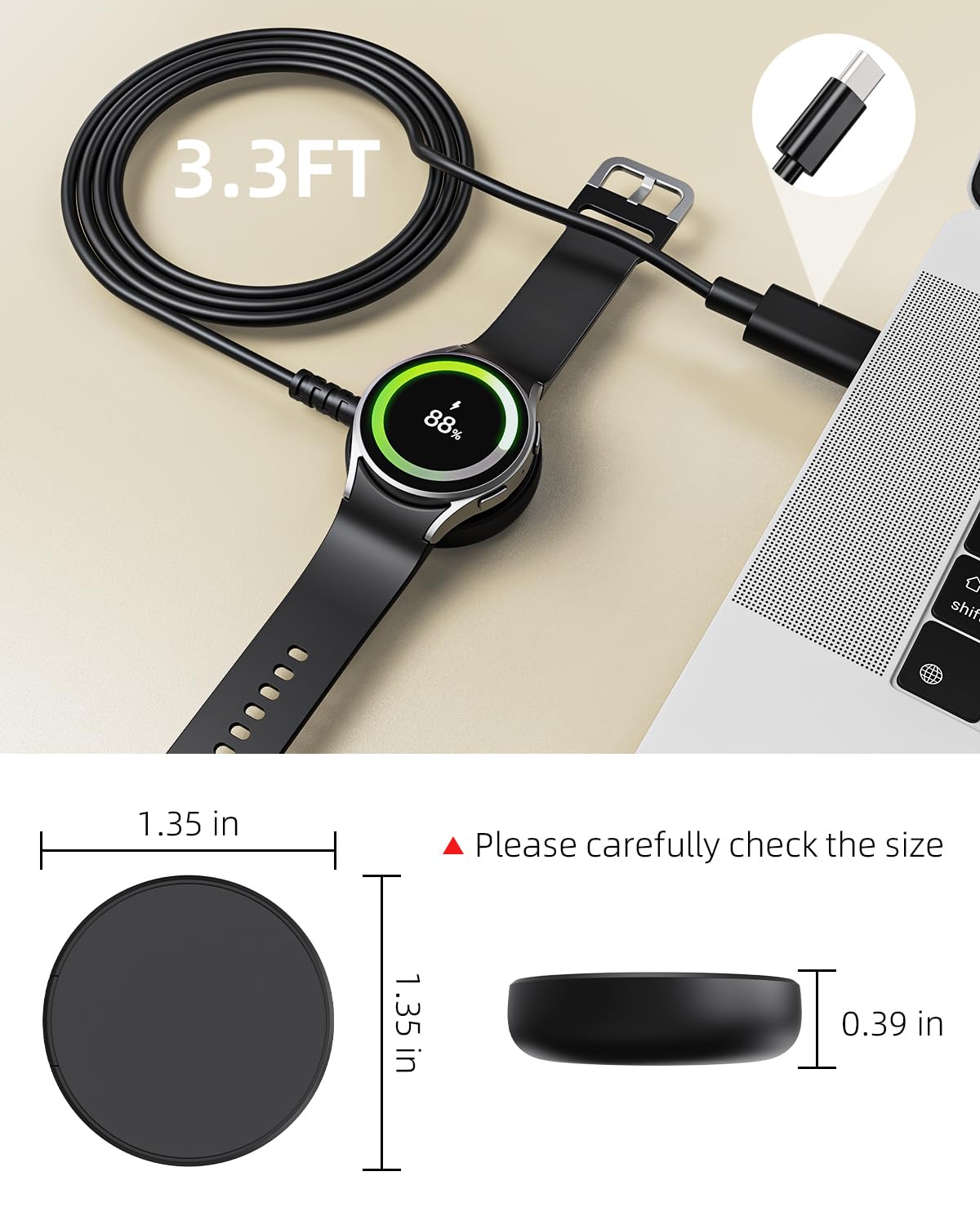 👉Wide Compatibility: Autallgee USB-C smart watch charger is compatible with watch such as 8, 8 Classic, Ultra 2025, Ultra, 7, 6, 6 Classic, 5, 5 Pro, 4, 4 Classic, 3, as well as Active 2, Active, FE. [Watch 8 (40mm/44mm)/8 Classic (46mm)/Watch Ultra (47mm), Watch 7 (40mm/44mm), Watch 6 (40mm/44mm), Watch 6 Classic (43mm/47mm), Watch 5 Pro (45mm), Watch 5 (40mm/44mm), Watch 4 (40mm/44mm), Watch 4 Classic (42mm/46mm), Watch 3 (41mm/45mm) ].【Note: Not compatible with Galaxy Gear S and Galaxy Fit】