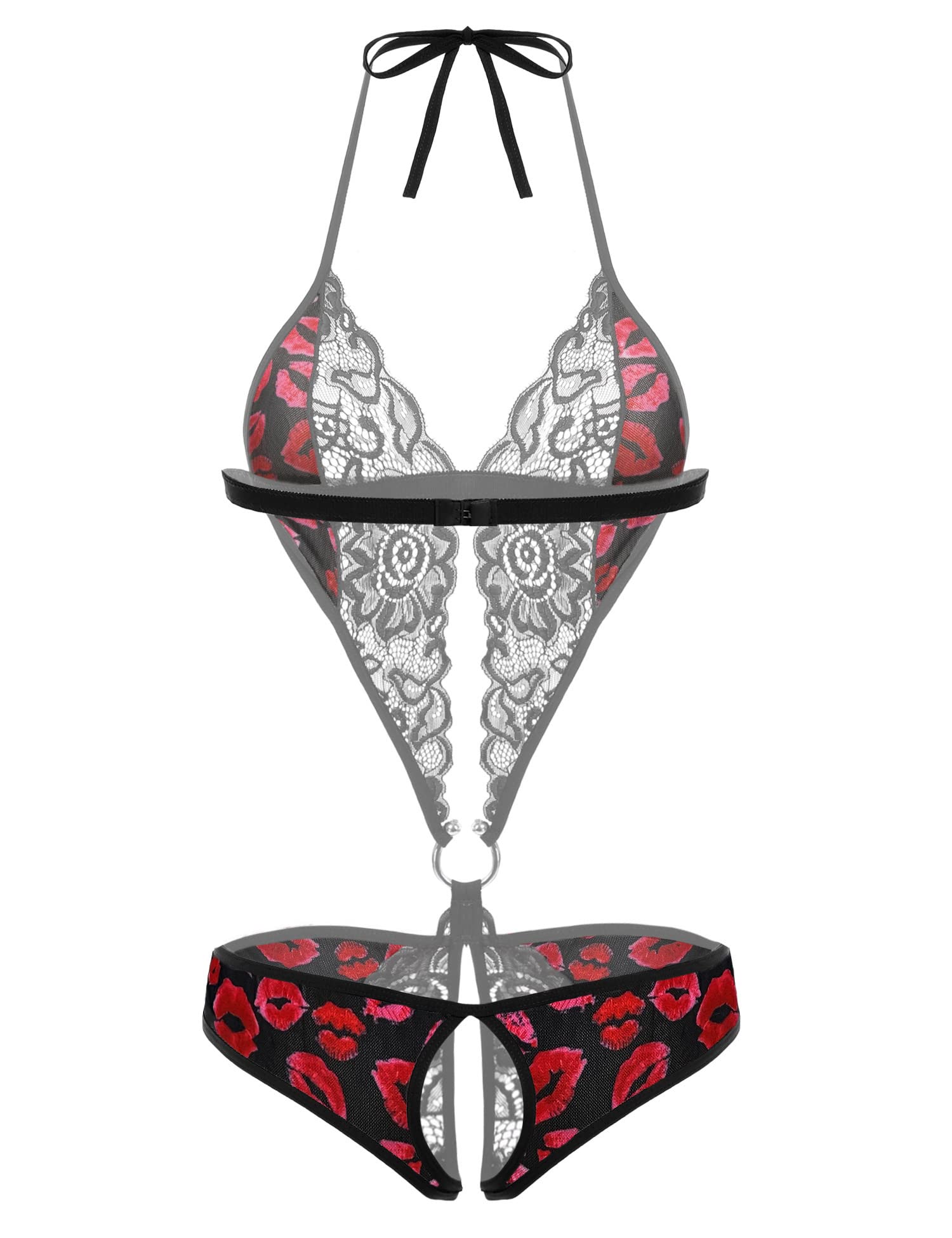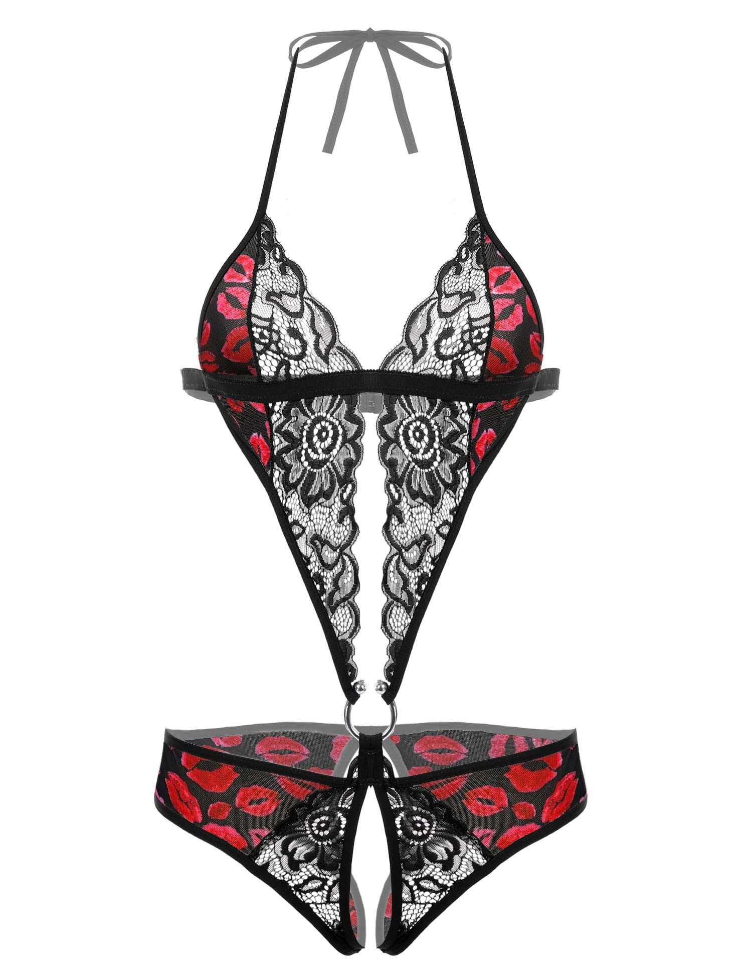 Featuring floral lace bodysuit lingerie, Classic Halter deep v-neck mini teddy outfits,back hook and eye closure women lingerie