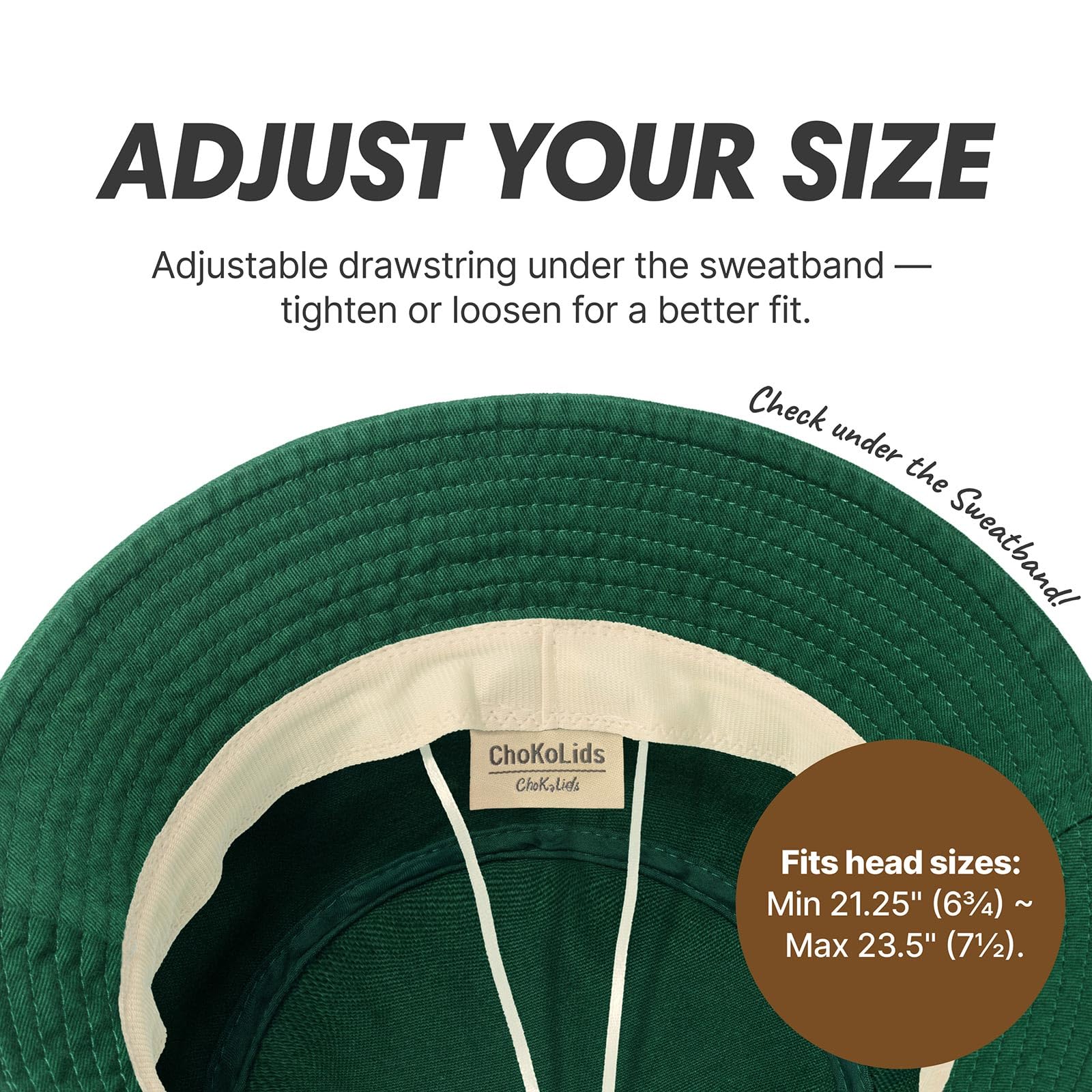 [ADJUSTABLE COMFORT] – Hidden inside the sweatband is a clever adjustable string that lets you tighten or loosen the fit. Whether you're heading to the beach or the city, enjoy a hat that moves with you and never feels off-size.
