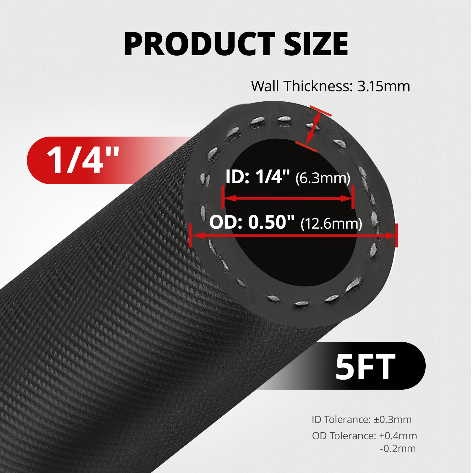 Specifications: ID: 1/4 inch (6.3 mm). OD: 0.5inch (12.6 mm). Length: 5 ft.