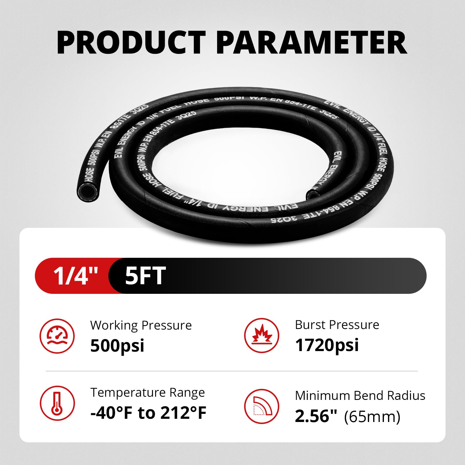 Medium: The high-pressure fuel hose is compatible with hydraulic oil, diesel, biodiesel, gasoline, oil, grease, E85, and more.