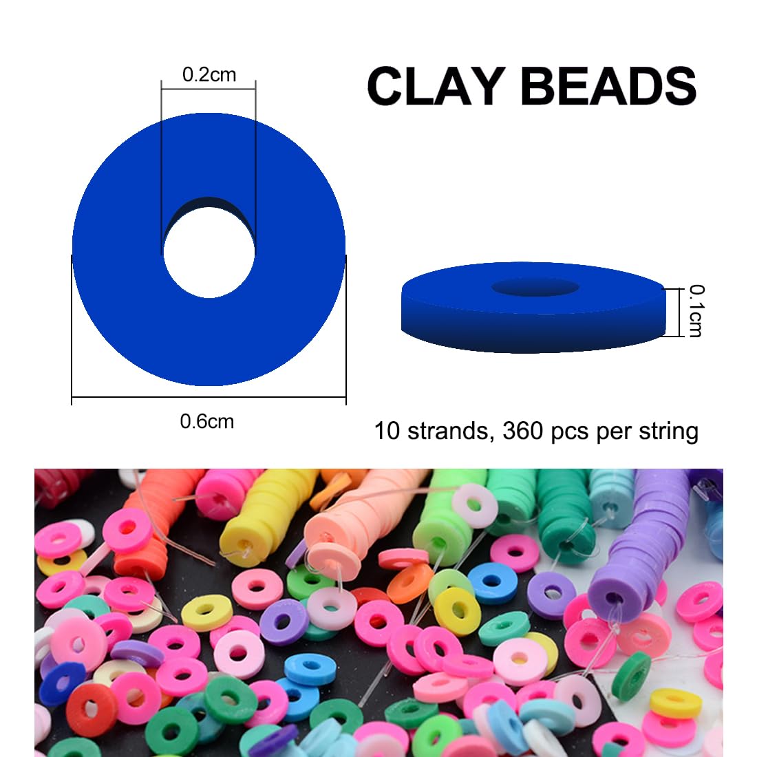 Package Contains: 10 strands of clay heishi beads for jewelry making, each string has about 360 pieces clay beads. The bracelet making beads are sized 6 mm in diameter, 2 mm in hole diameter. Enough quantities to creat 50 pcs bracelets.