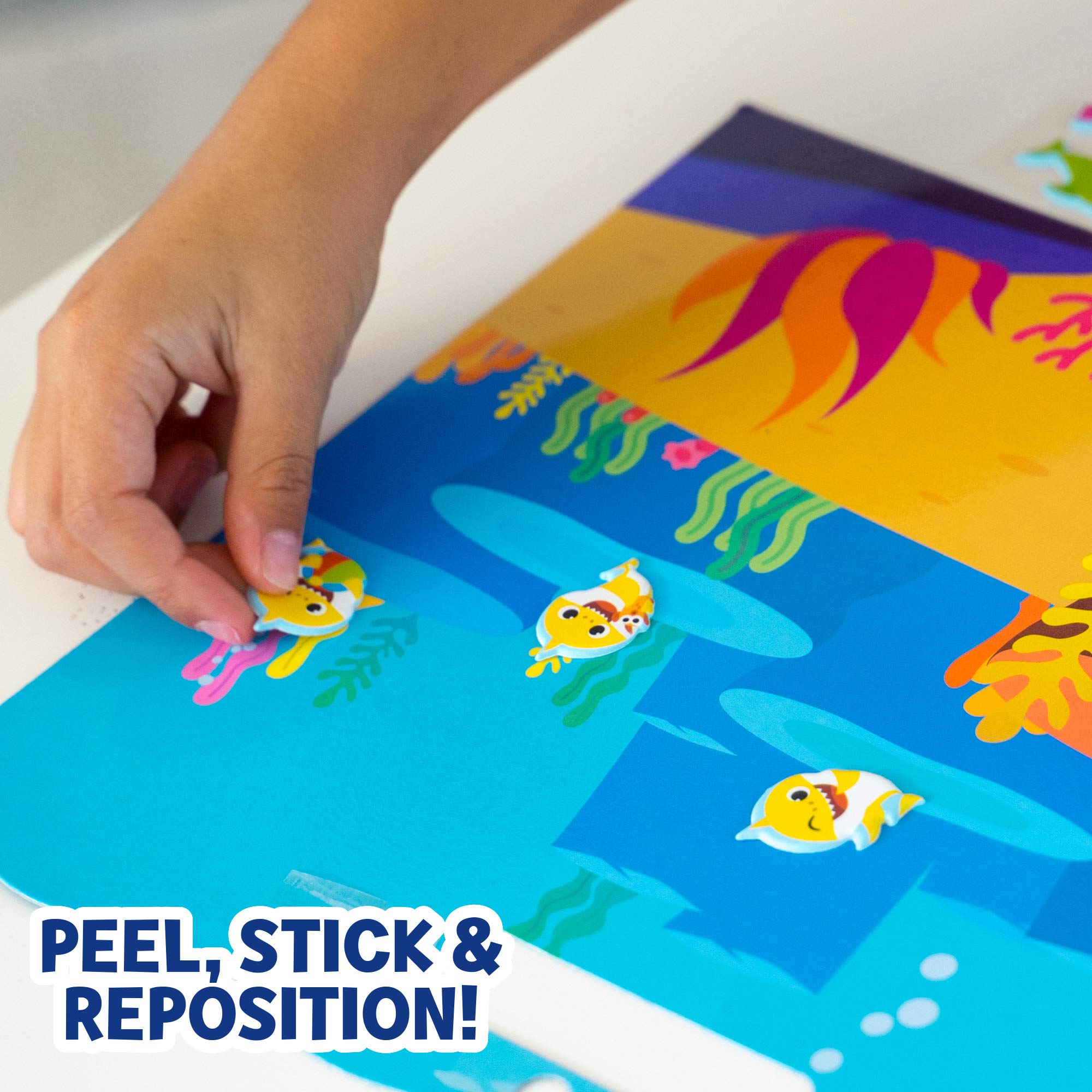 100+ REPOSITIONABLE BABY SHARK STICKERS: Join the Baby Shark family for hours of JAW-some fun! Peel, stick, and move them around over and over again!