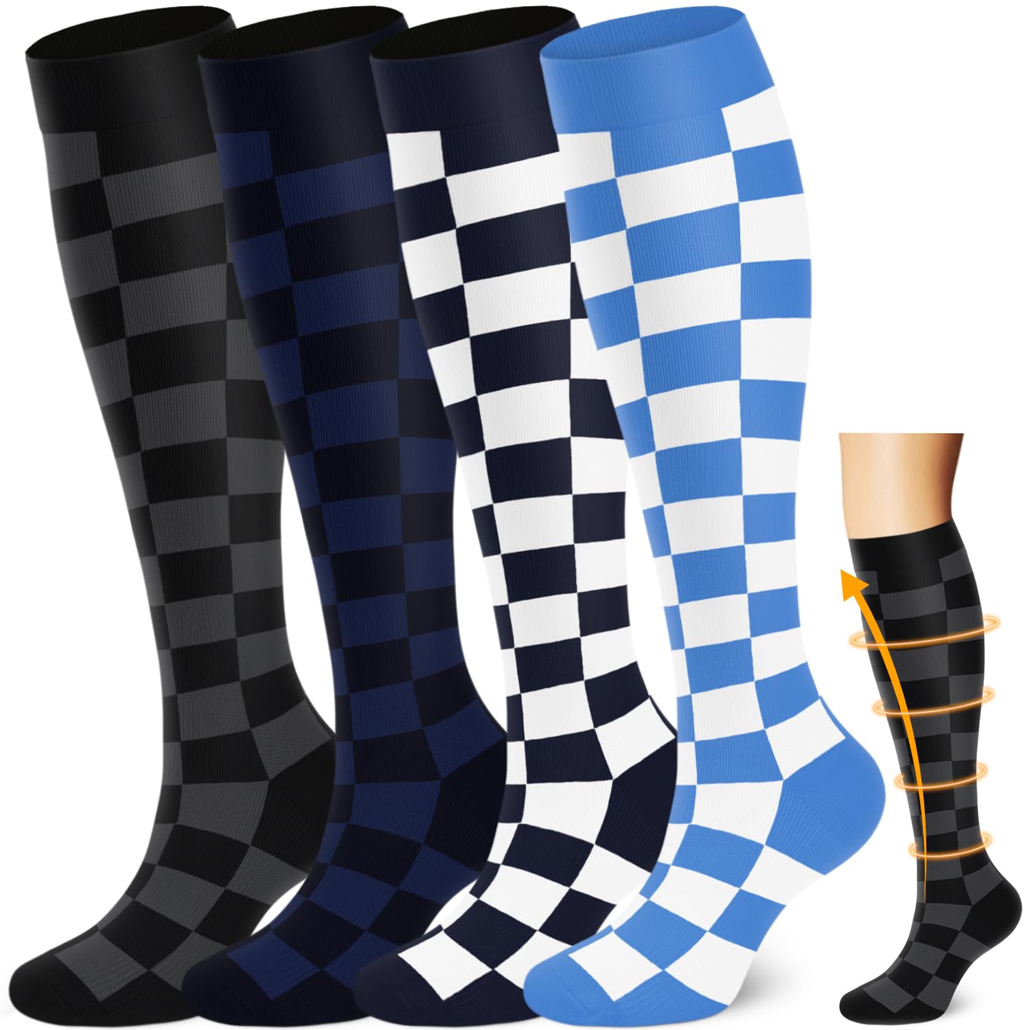 Available in S/M, L/XL, 2XL, 3XL, and 4XL, these compression socks for women and men provide more size flexibility than standard options, including better fit for wider calves and different leg shapes.