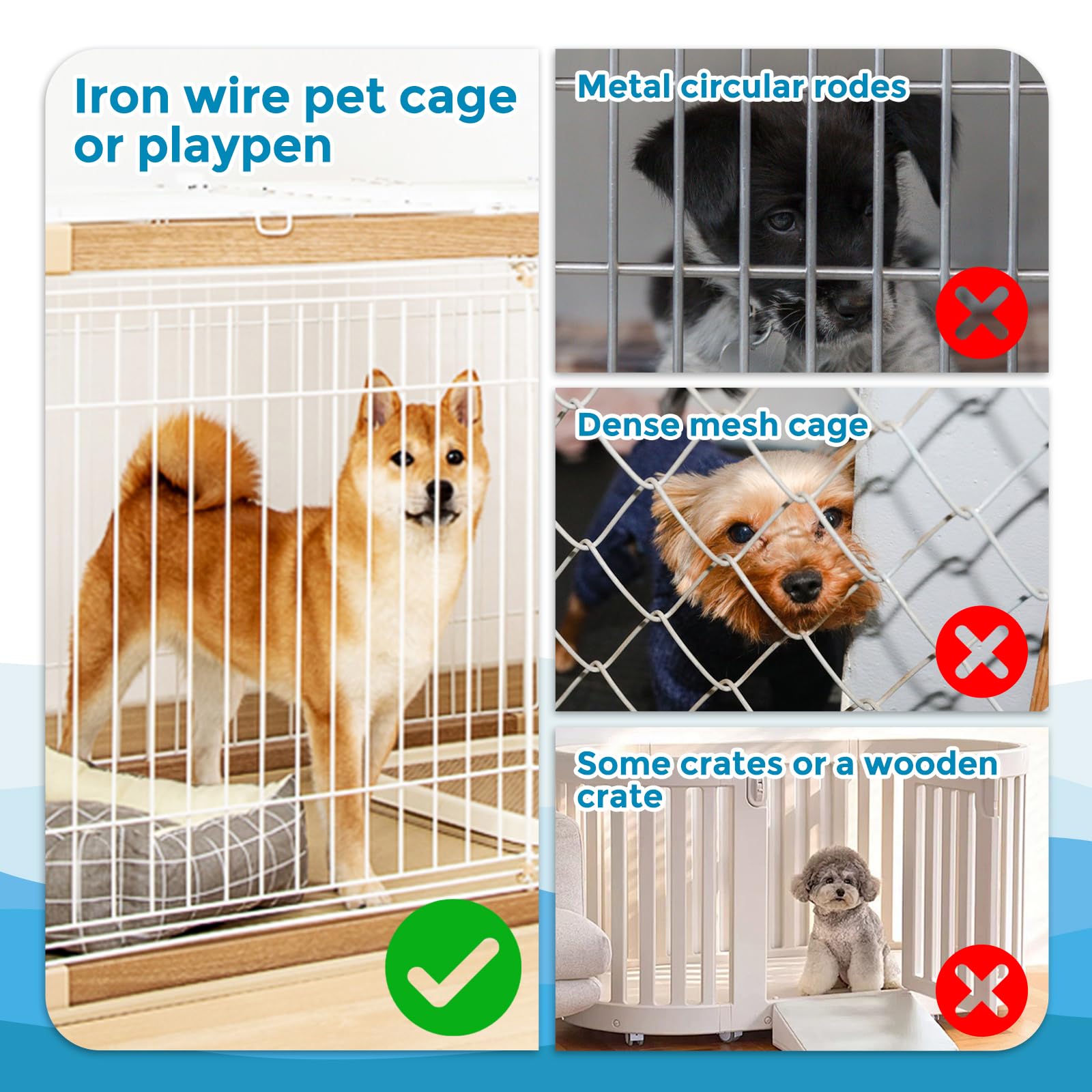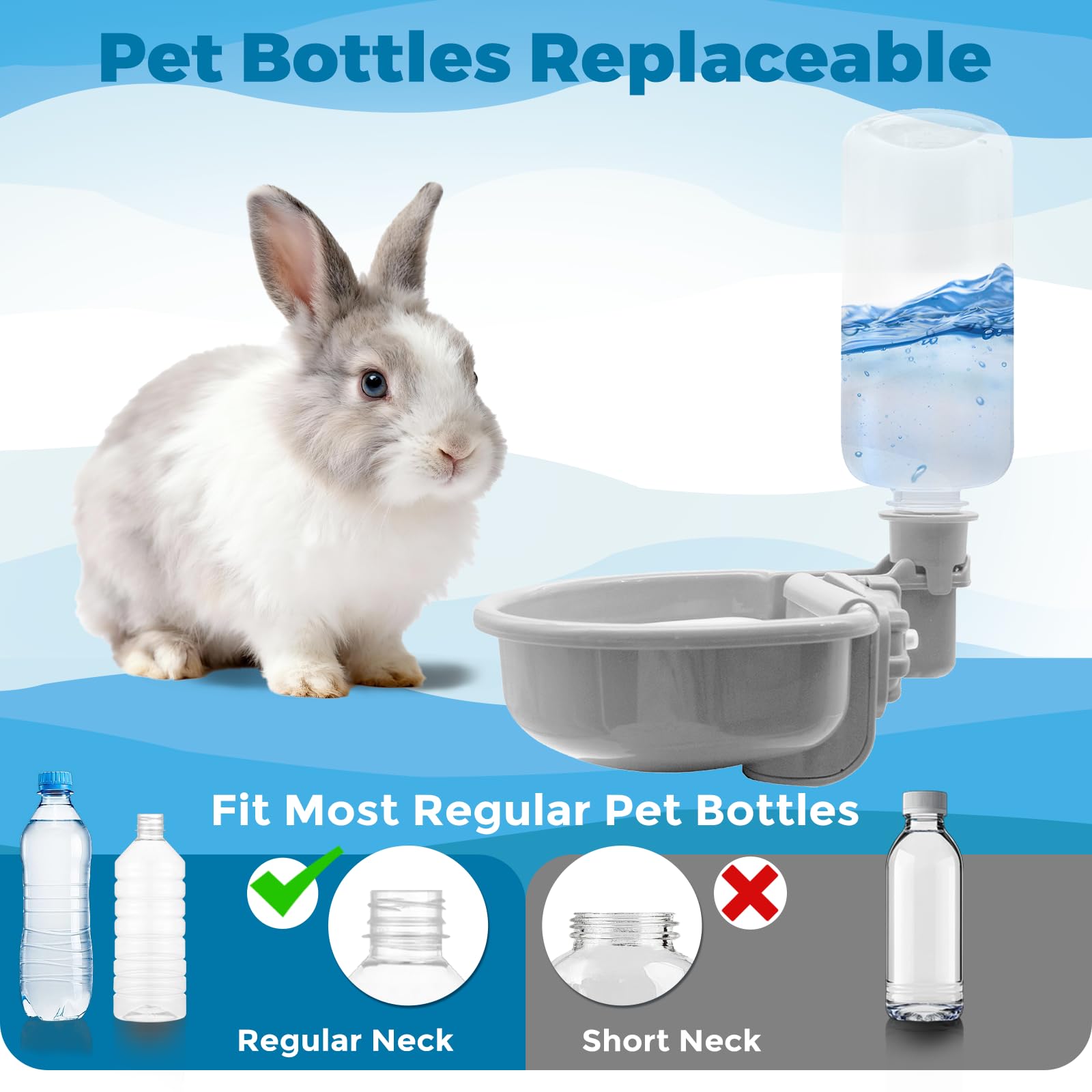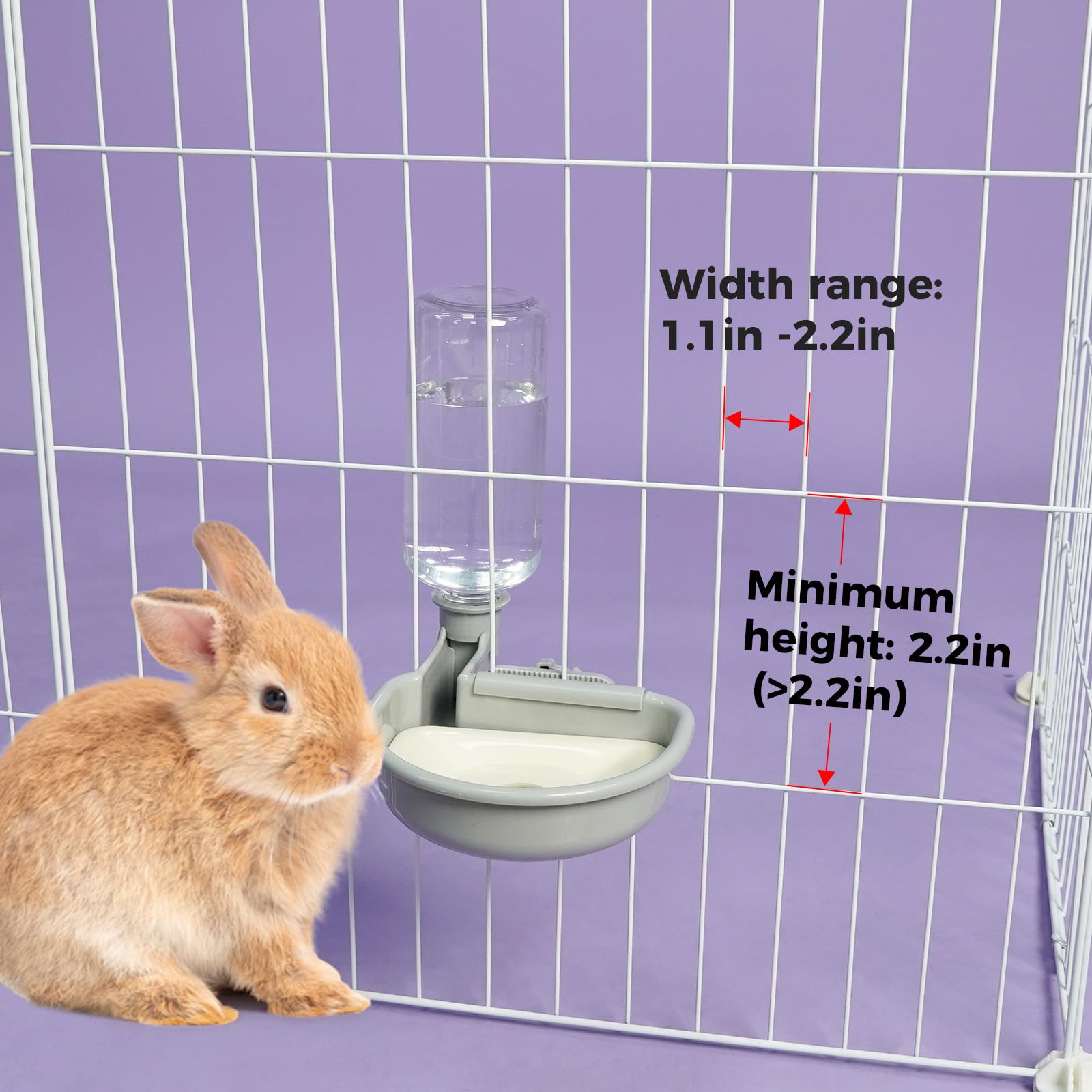 【Bottle outside cage】: Bottle outside cage design is very convenient and efficient for changing water. Besides, Tooth-shaped suspension clip can keep the bottle more stable when your pet come in/out cage that bring shakes to the cage. ✅Important Tip: The bottle suitable for metal wire pet cages and the vertical cage rods gap: 1.lin-2.24in. The height of the cage gap shall not be less than 2.2in.
