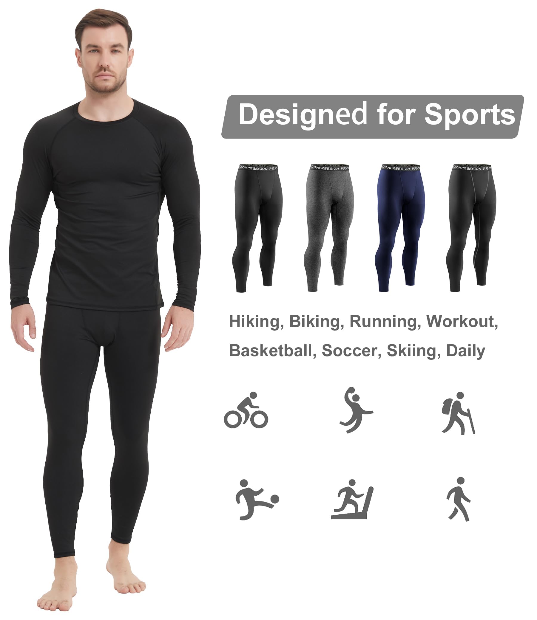 4 Way Stretch:Mens thermal baselayer made of stretchable fabric,these thermal tights pants can effectively protect muscles and reduce muscle shaking during intense exercise.