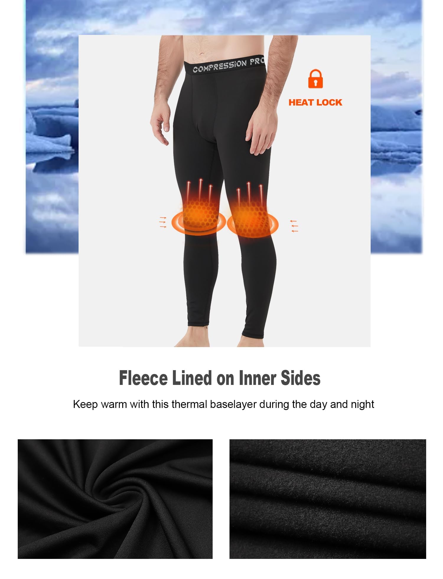 Heated and Warm:The mens thermal compression pants are designed for you to keep the warm in winter.Fleece lined inside help you preserve heat when you stay in cold weather.