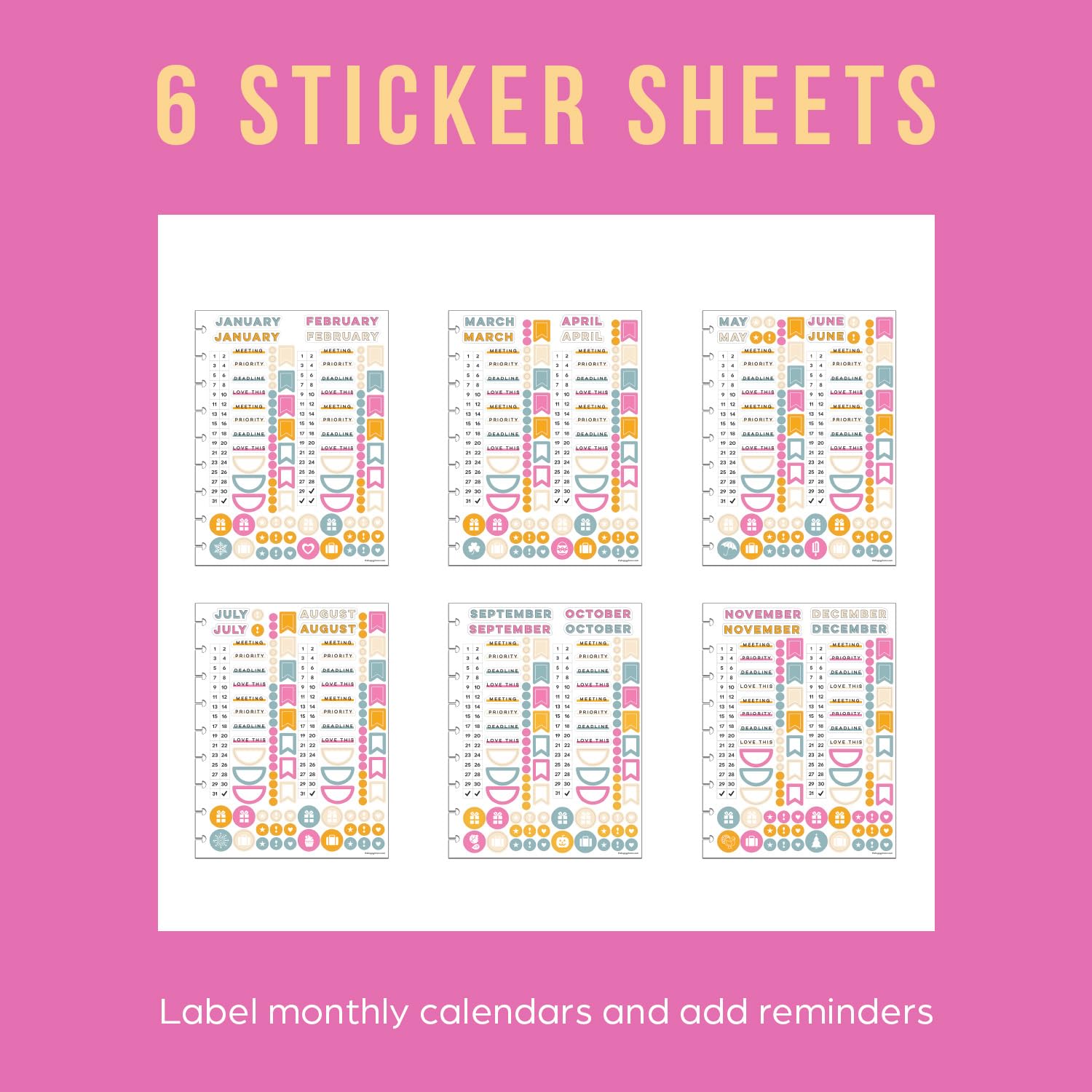 ADDITIONAL ACCESSORIES: No cute day planner is complete without a few extras! Draw attention to an important meeting, highlight a special day, or add some seasonal flair with our sticker packs. You can also add pocket folders for even more organization.