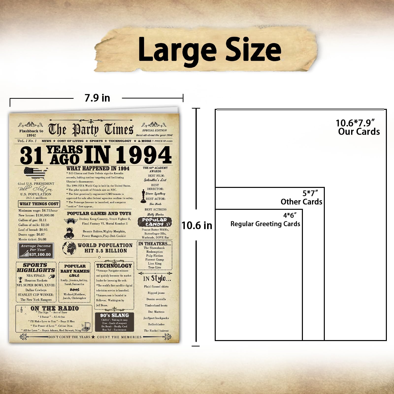This vintage large birthday card is an excellent gift for those who are about to celebrate their 31 year old birthday, recording interesting events and other information from your born year.