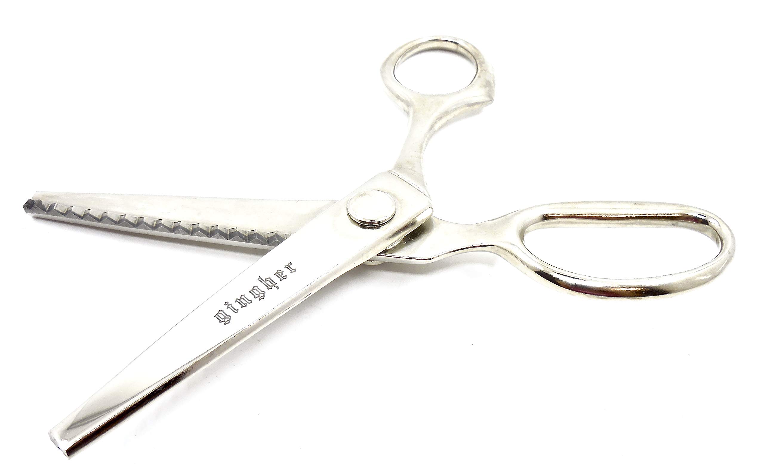 A sewing or crafting kit isn’t complete without Gingher’s Pinking Shears for making a nice finish on seams and a distinctive edge for crafts. Pinking shears produce a ravel-resistant zigzag cut on seams. To maintain the original, hand-tuned setting of the blades, we recommend cutting only one layer of material at a time. Blades should be cleared of lint frequently to maximize effectiveness.~