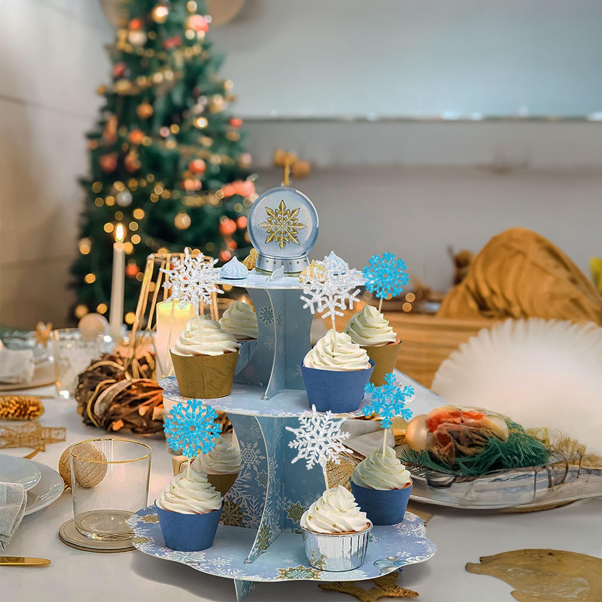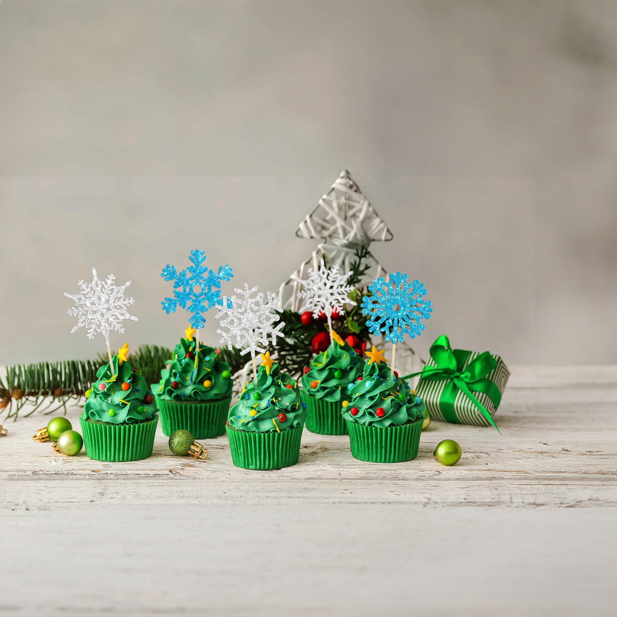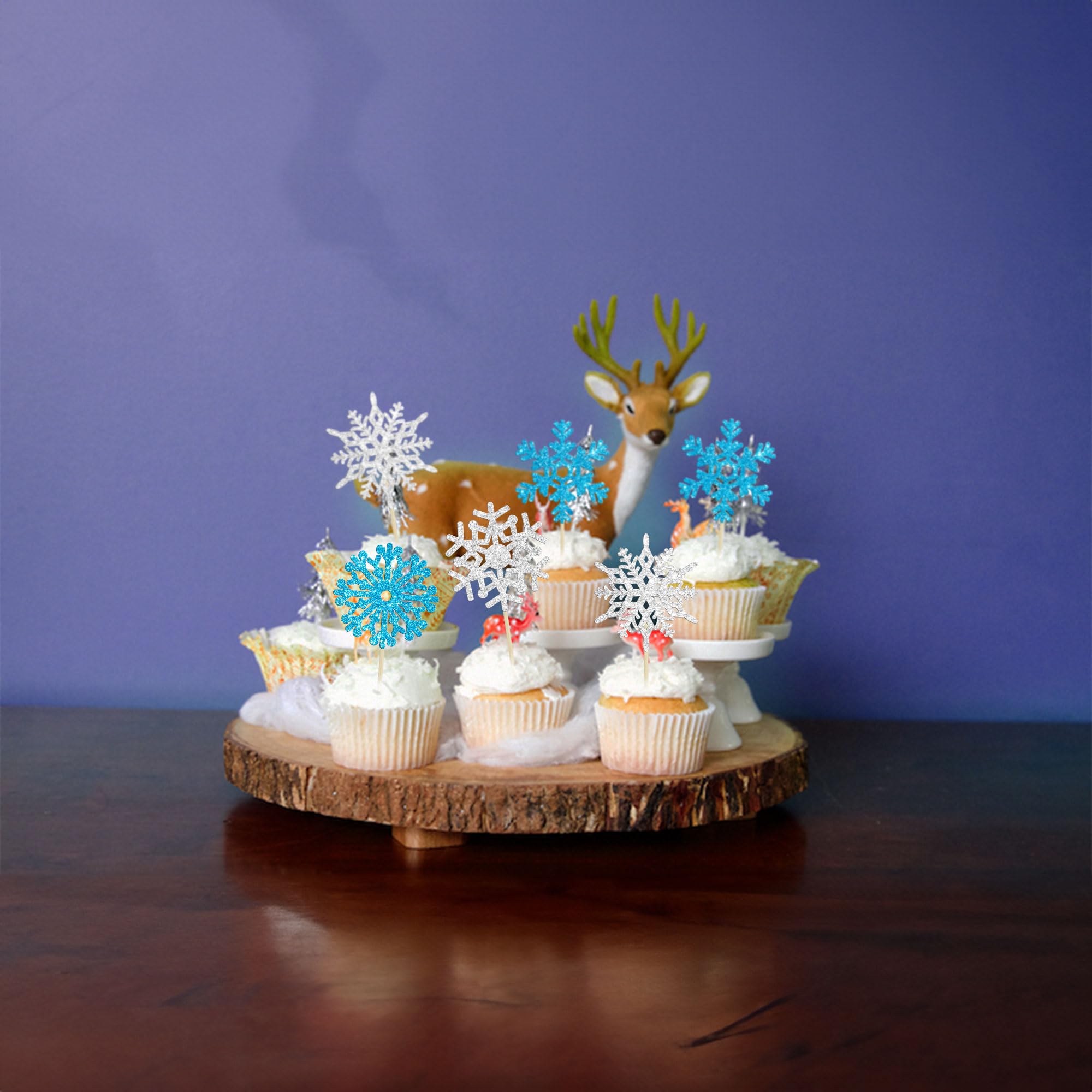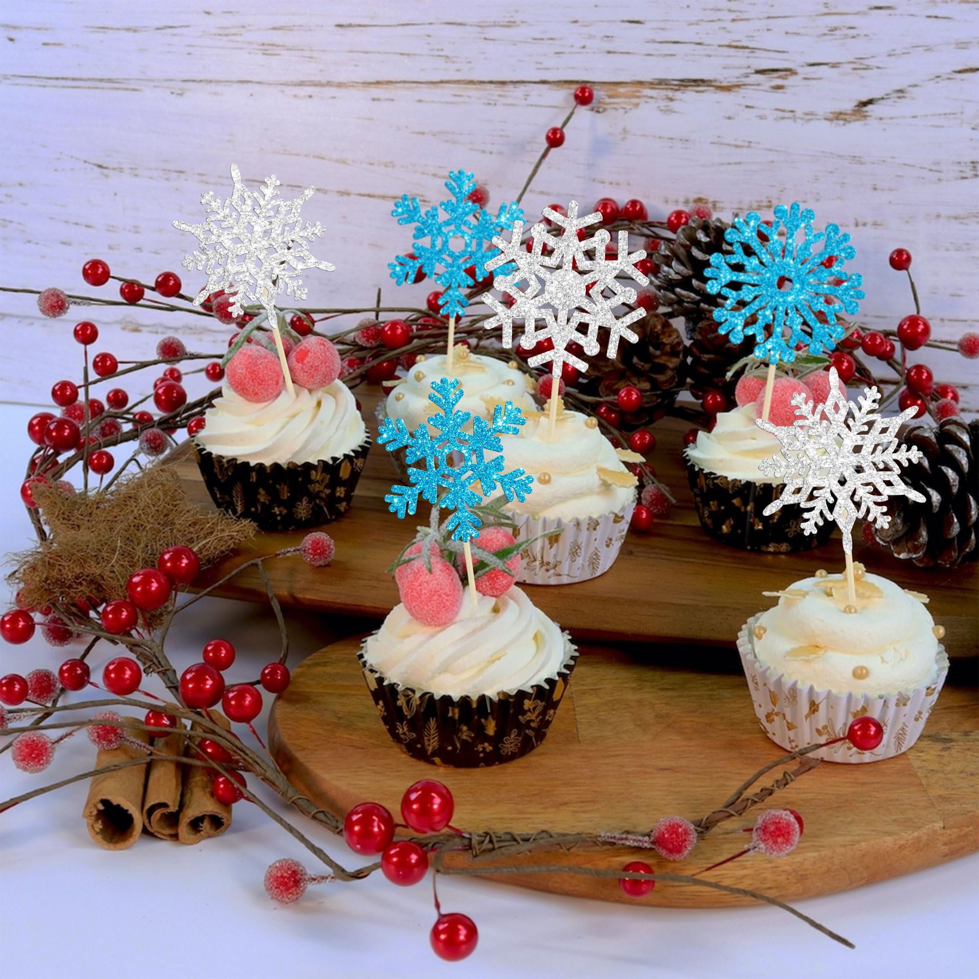 -Package included: 24Pcs Snowflake Cupcake Toppers. Comes with assembled, so you can insert into your cake directly, which make your cake more interesting.