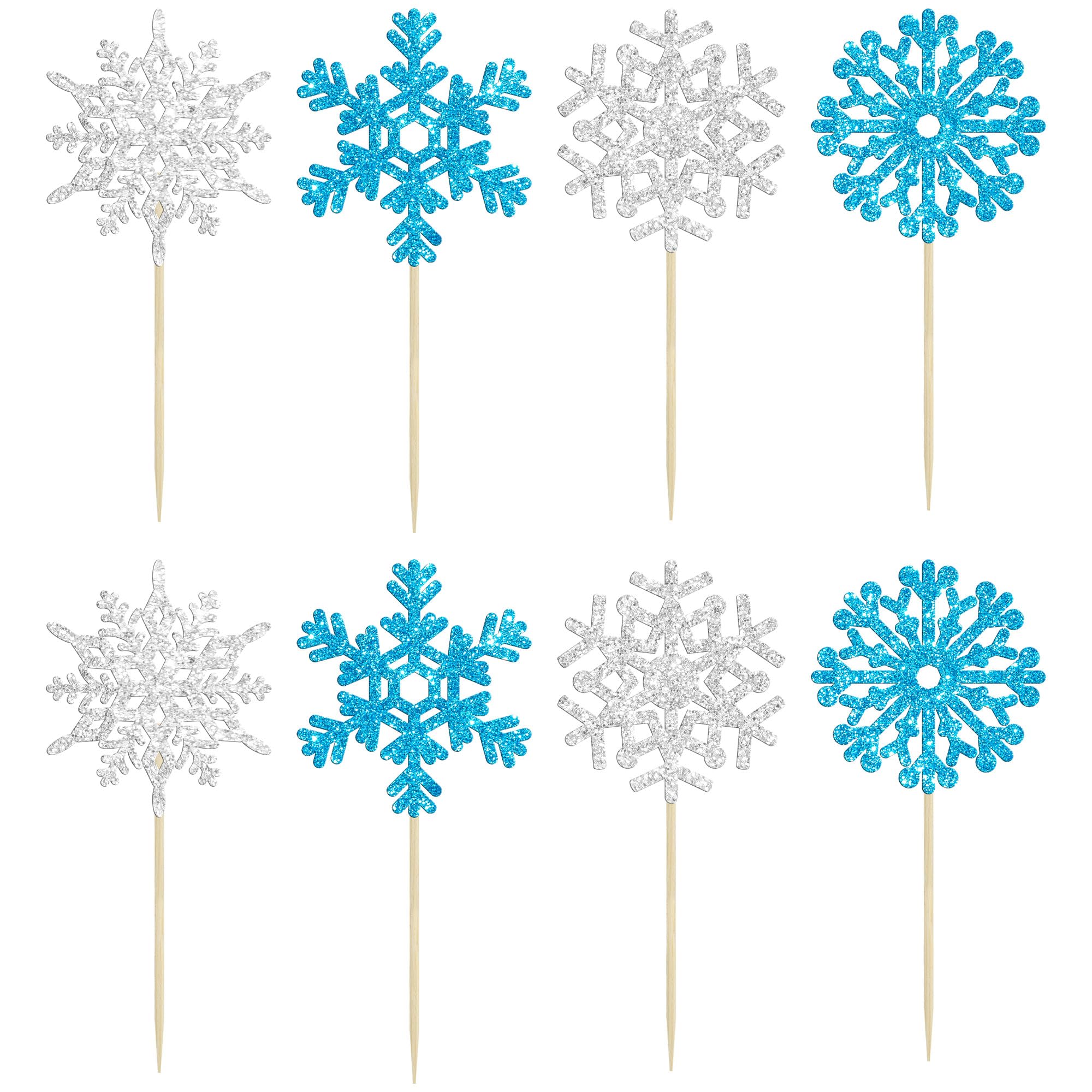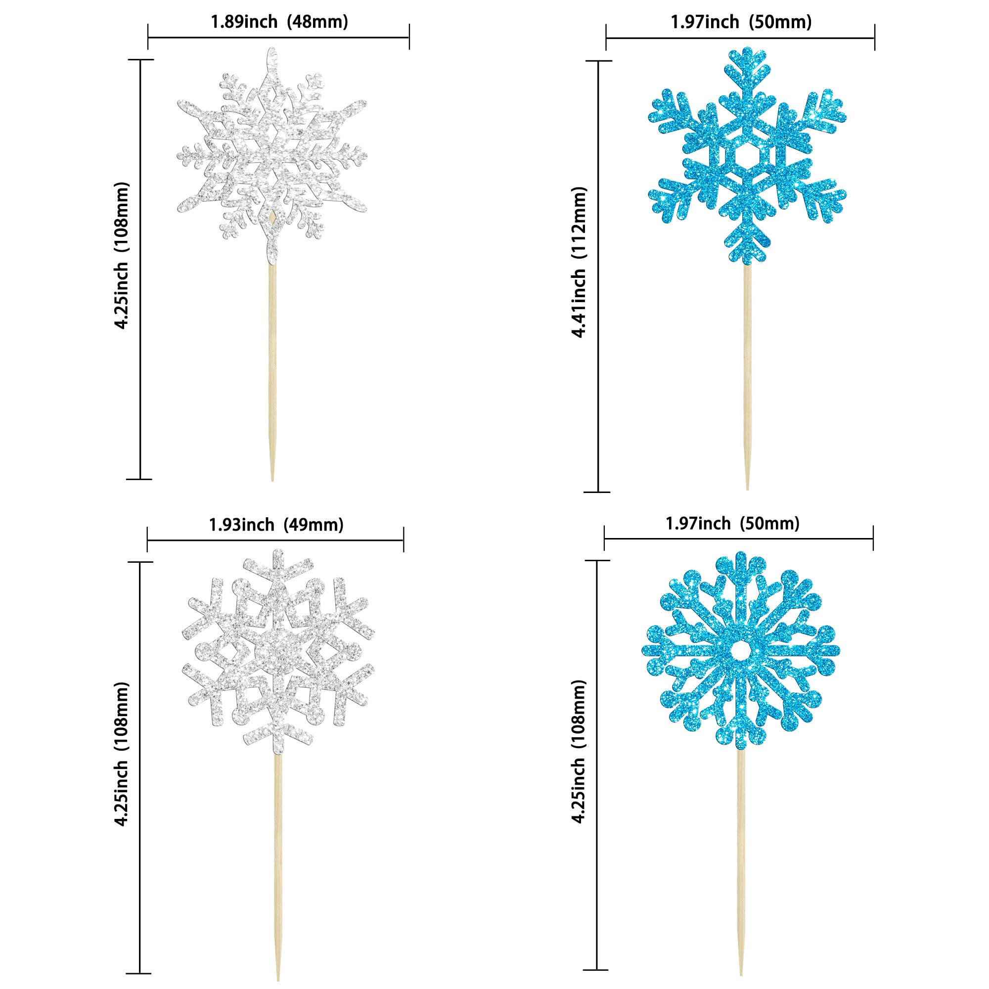 -Premium Material: These Snowflake Cupcake Toppers are made of high quality 300 gram card stock and food-grade toothpick, very safe to put them on cakes, cupcakes, ice cream, fruits, pie, dessert, cheese or any dish and food appetizer you want to decorate.