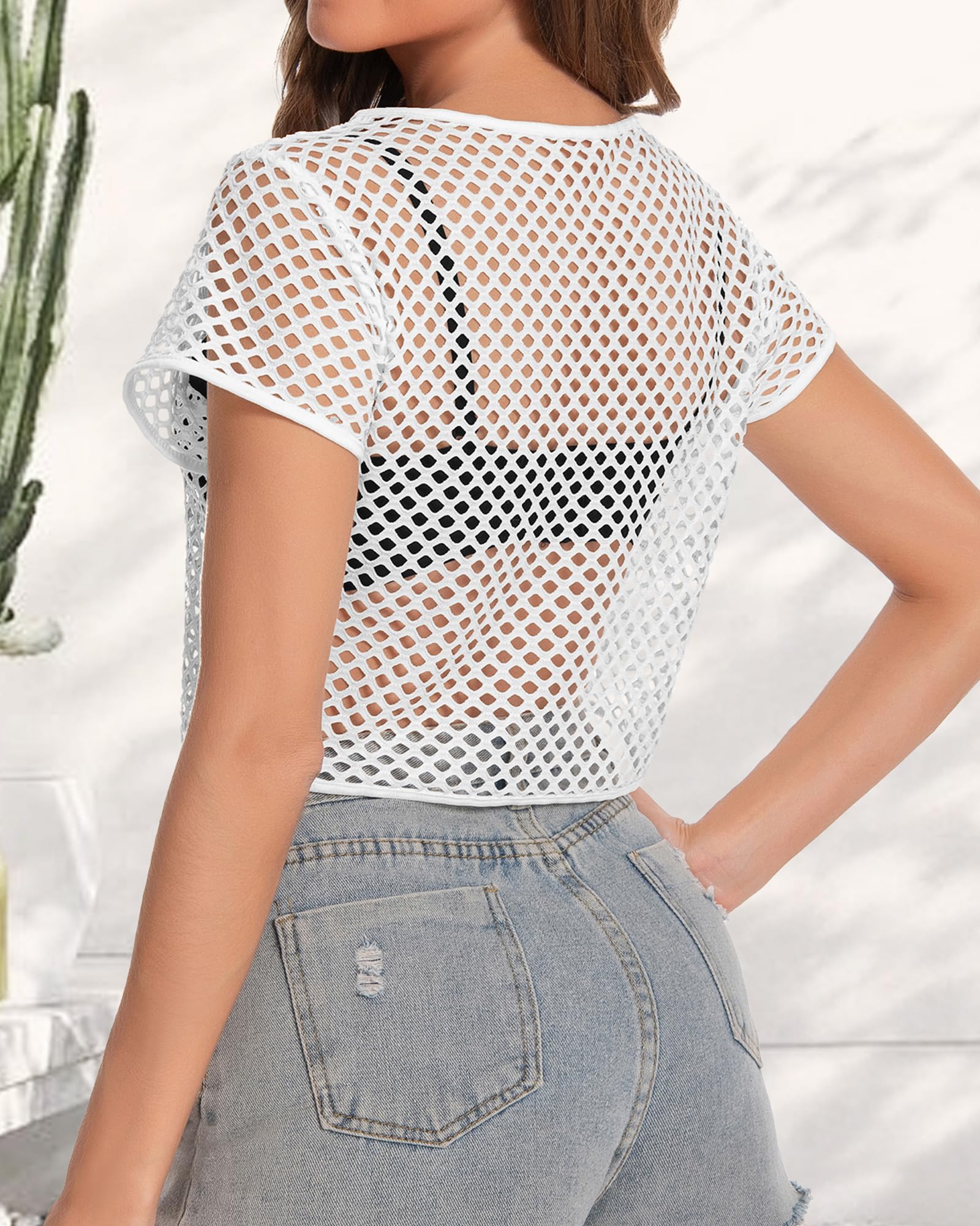 Material: Sheer mesh t-shirt is crafted from lightweight, breathable fabric, ideal for warm weather. The short sleeve mesh net cover up offers an airy texture and a delicate fishnet for a stylish appearance.