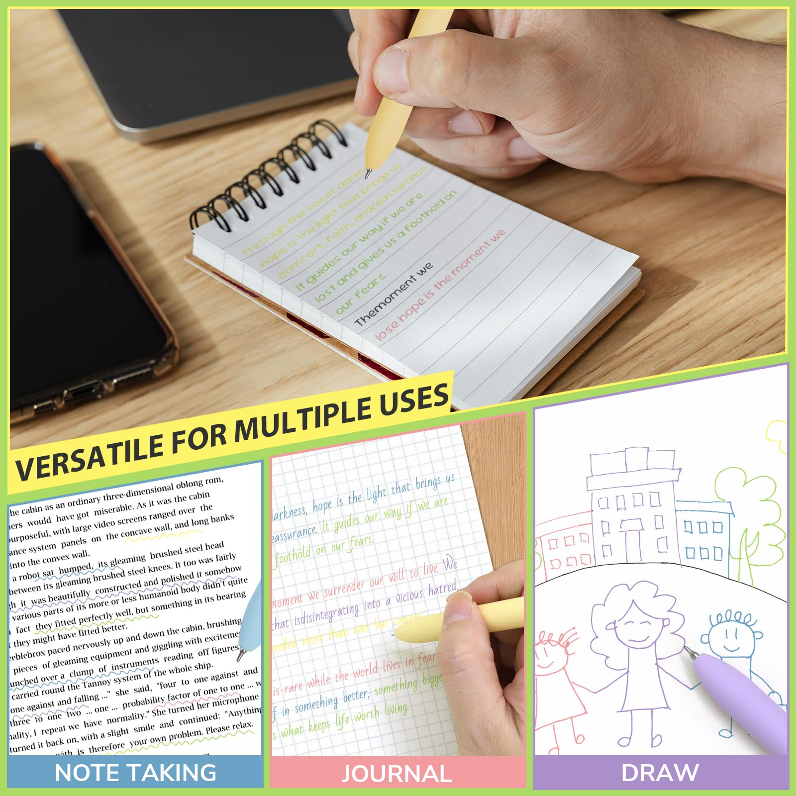 Vibrant Colored Gel Pens: You can get 6 new colored pens filled with 6 different colors of ink which turns note-taking, planning, and journaling session into a fun and colorful event. They will add a touch of personality to your work or school