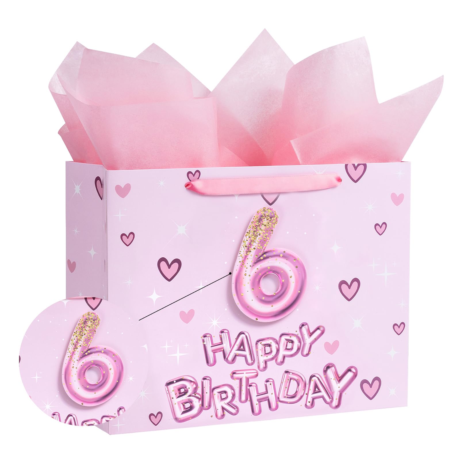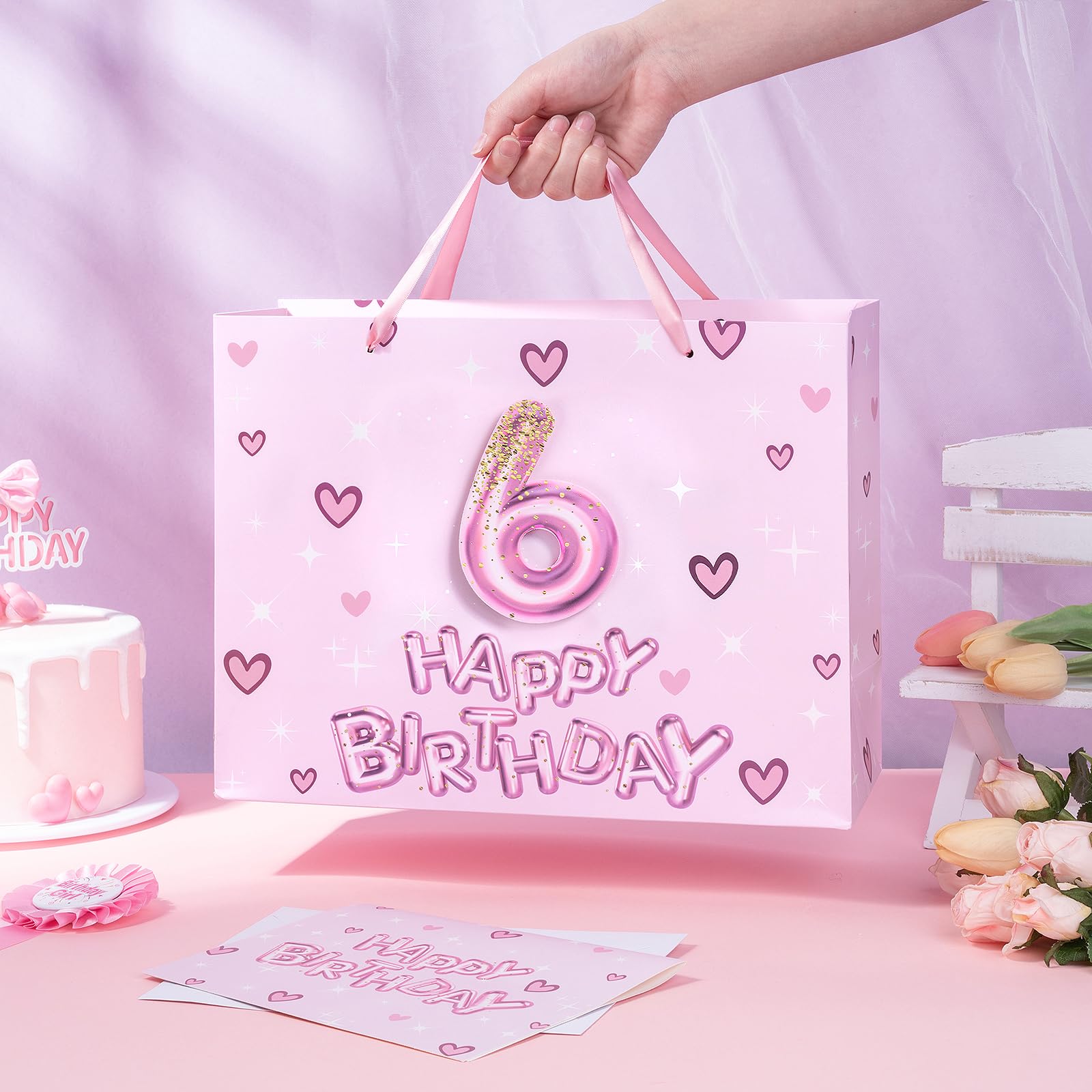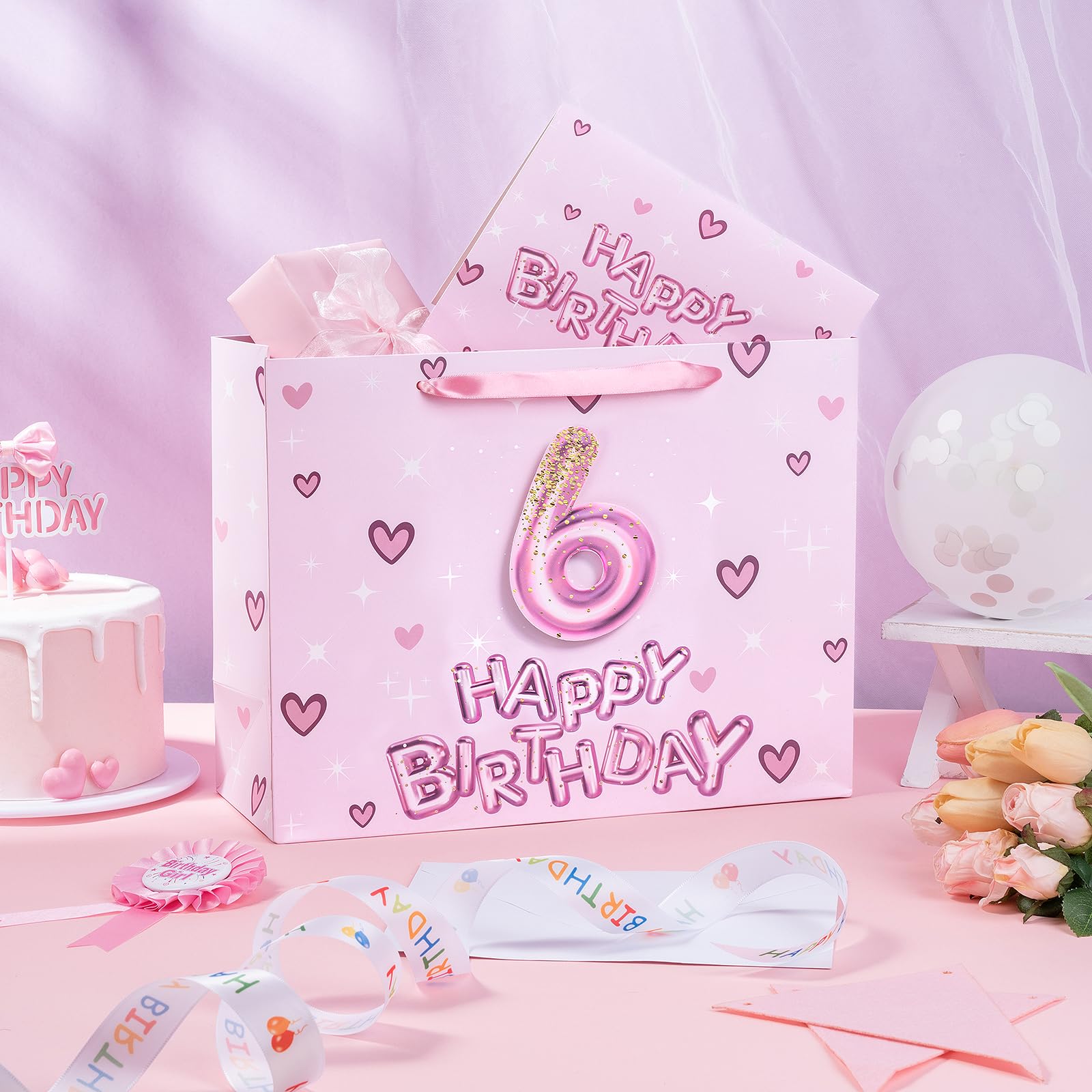 Ideal for Girls' Birthday Celebrations: This gift bag is specifically designed for girls, with its soft pink background and playful balloon design, making it perfect for 6th birthday gifts for daughters, friends or loved ones celebrating their special day