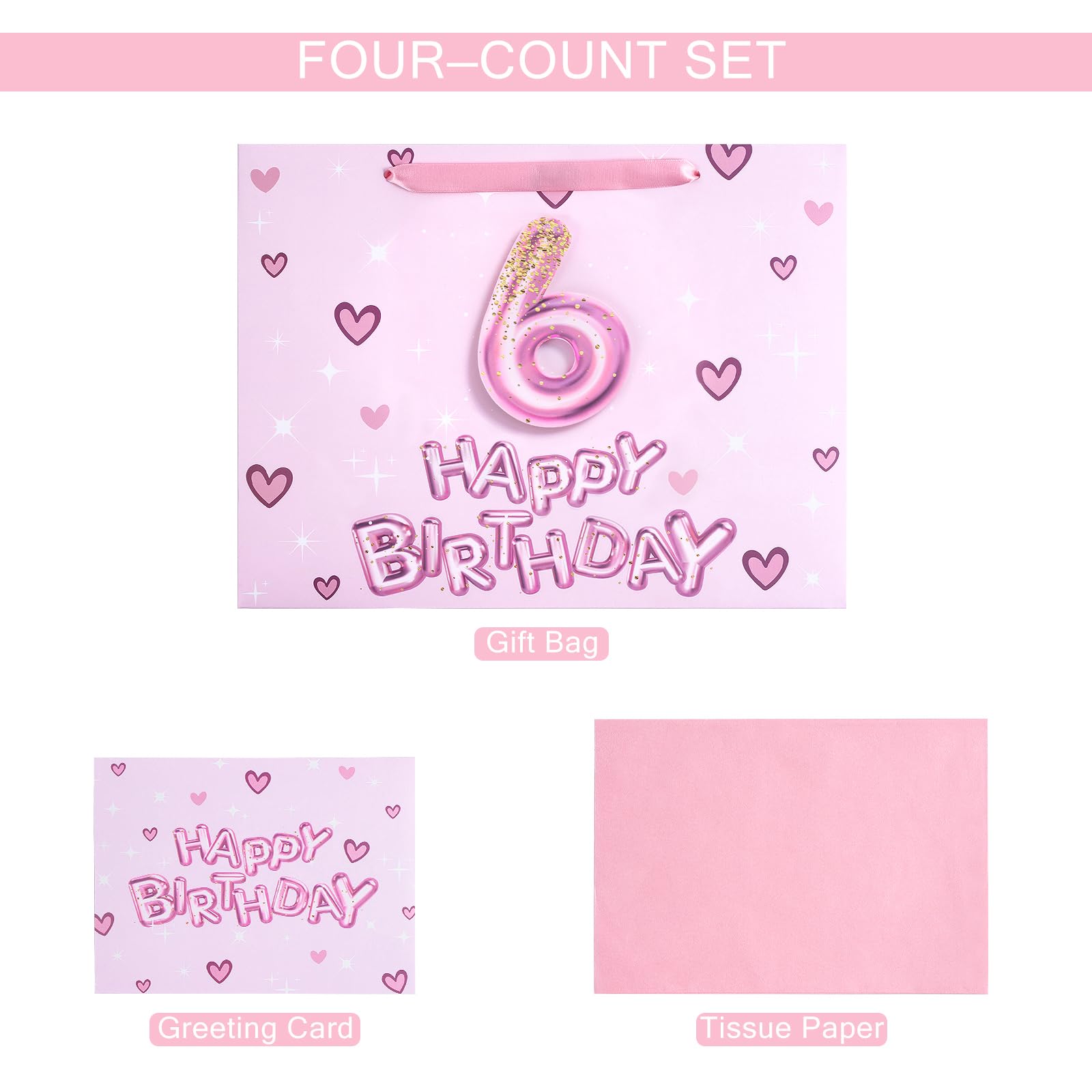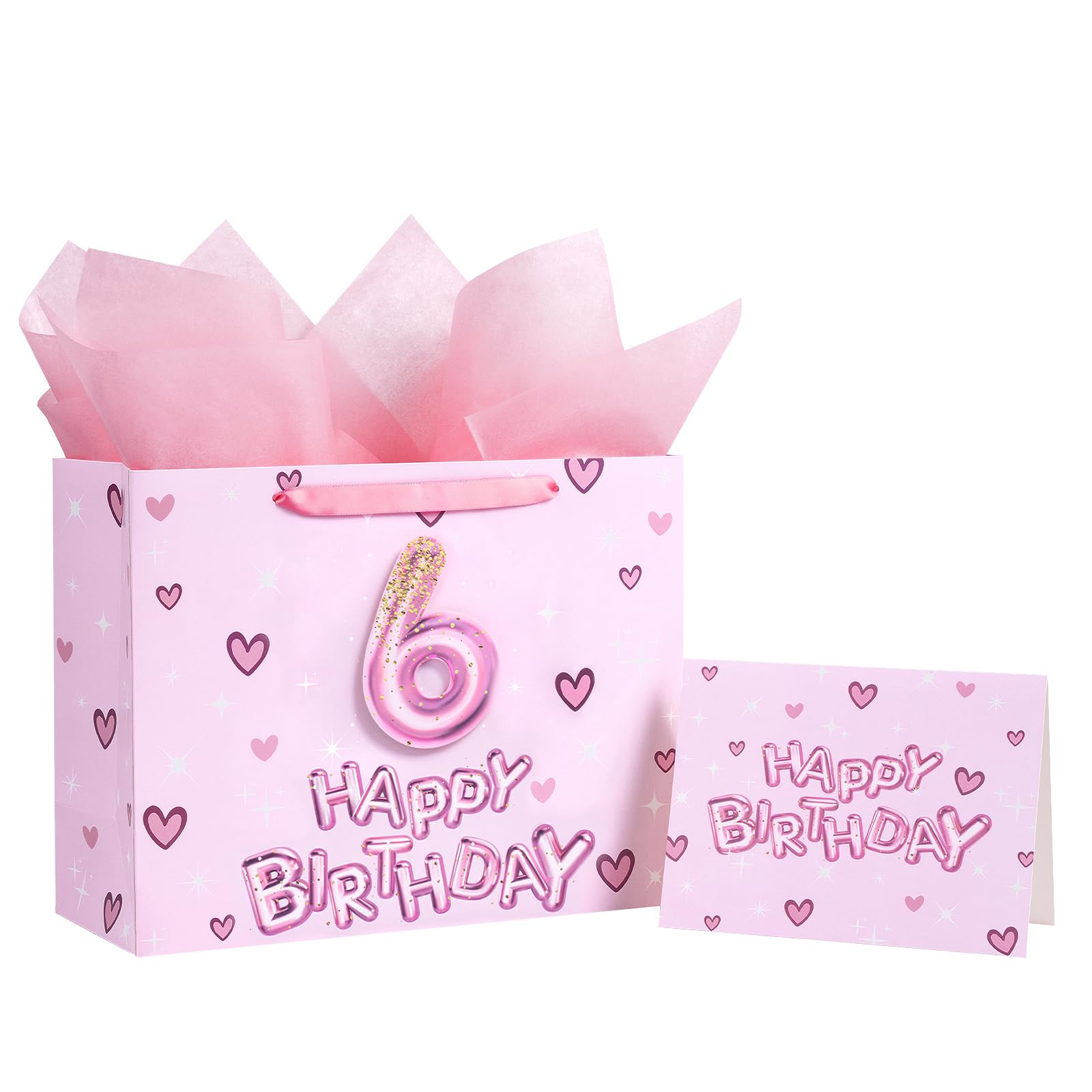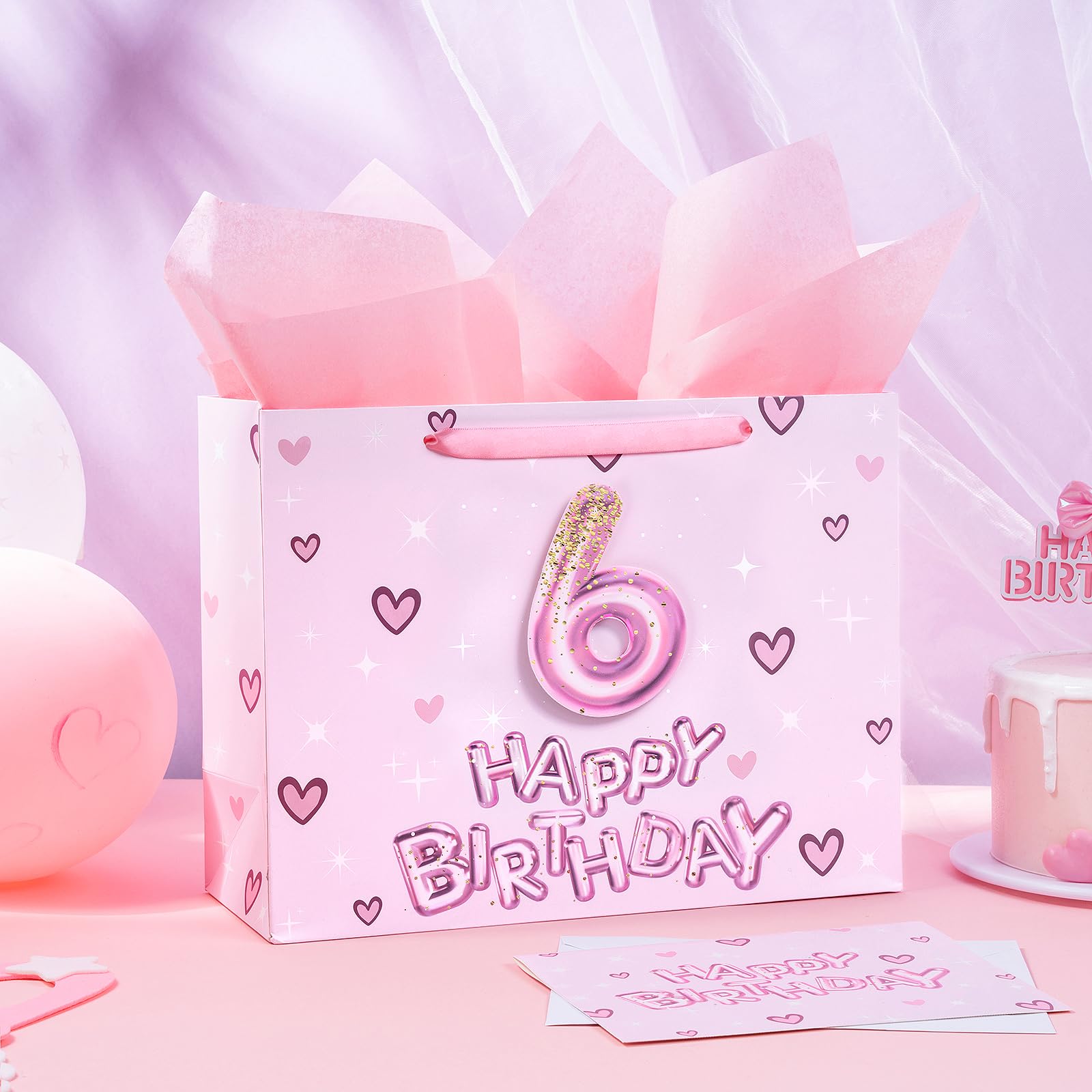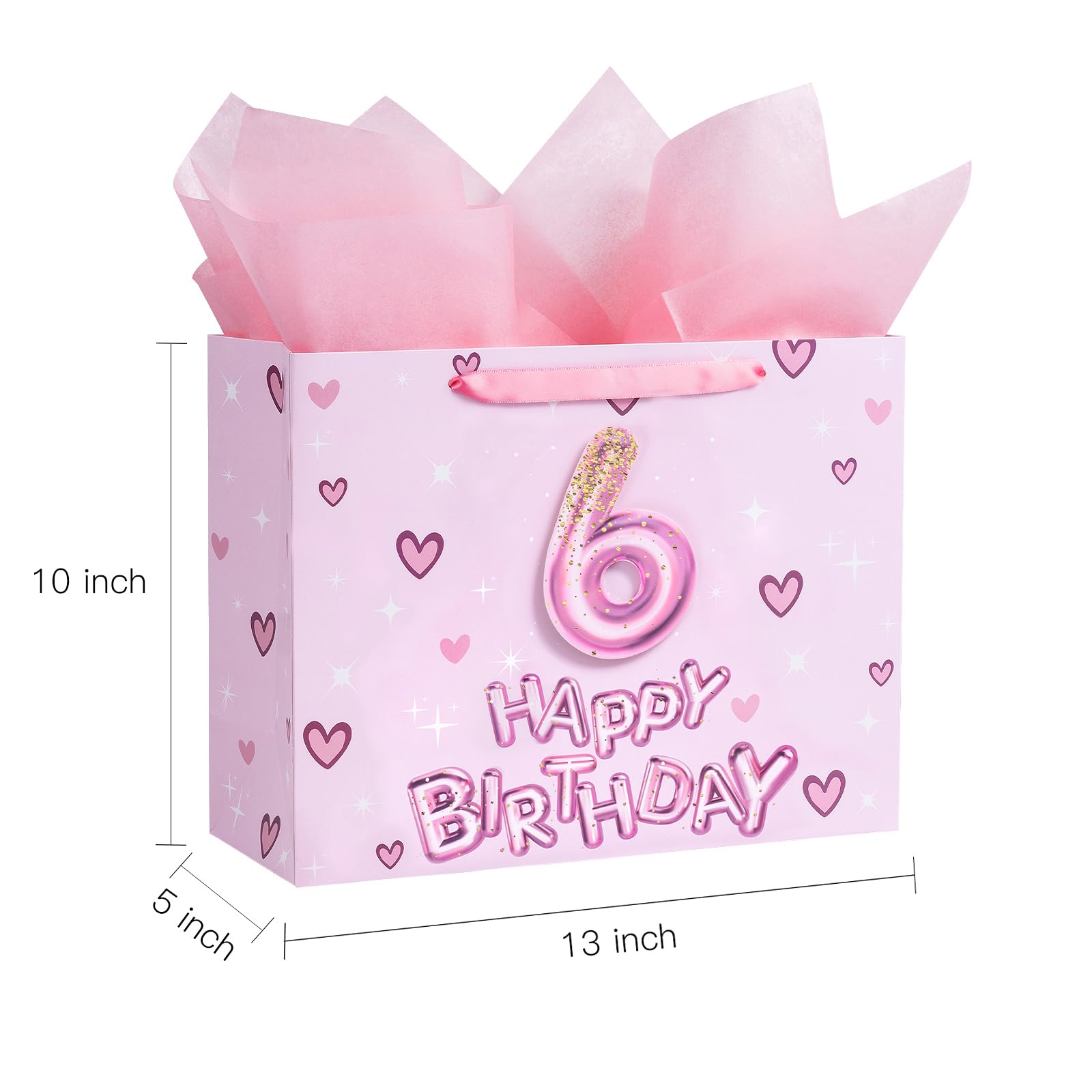 Ideal for Girls' Birthday Celebrations: This gift bag is specifically designed for girls, with its soft pink background and playful balloon design, making it perfect for 6th birthday gifts for daughters, friends or loved ones celebrating their special day
