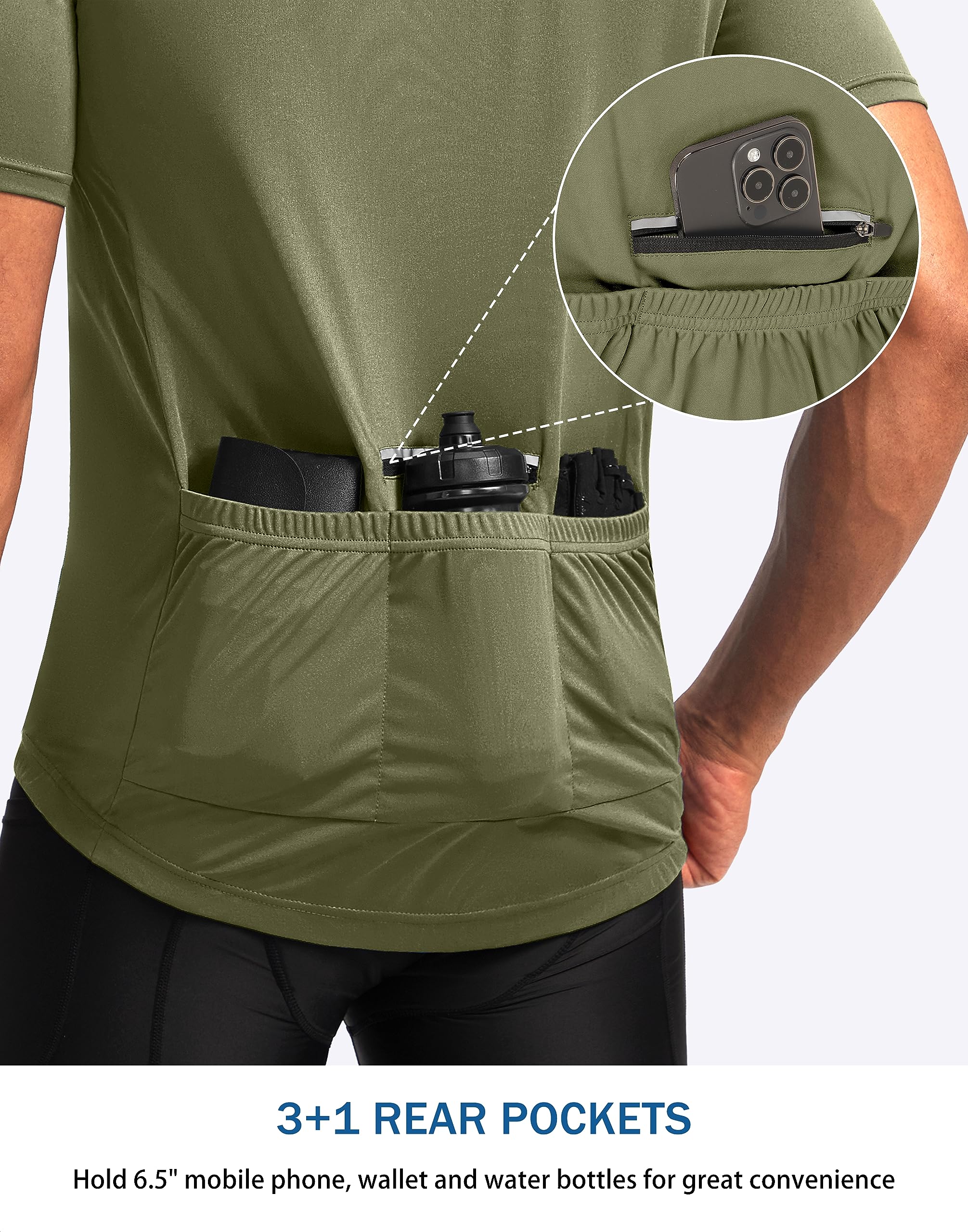 4 Pockets: 3+1 rear pockets provide convenient storage for your cycling essentials, such as water bottles, energy bars, and a phone, with one pocket featuring a zipper closure for added security, so you can ride with peace of mind knowing your belongings are safe and easily accessible.