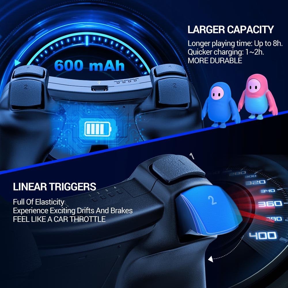 【Long Battery Life & Long Bluetooth Connection Distance】Remote for PS3 with a large battery capacity of 600mAh, providing 5~8h long playtime (auto-sleep function is provided for saving power).