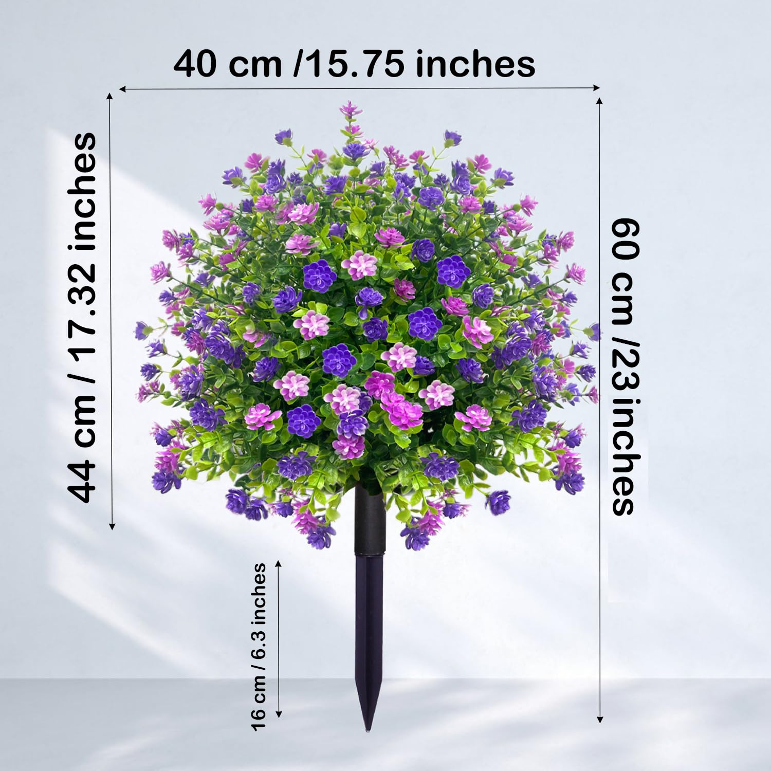 Set of 2 Outdoor Faux Topiaries Ball Trees with Purple Silk Flowers: Total sizes(Including Spikes): 23.6"H x 15.75"W. Easy Installation.Just fluff it for a full shape and insert the stakes into planters or ground.