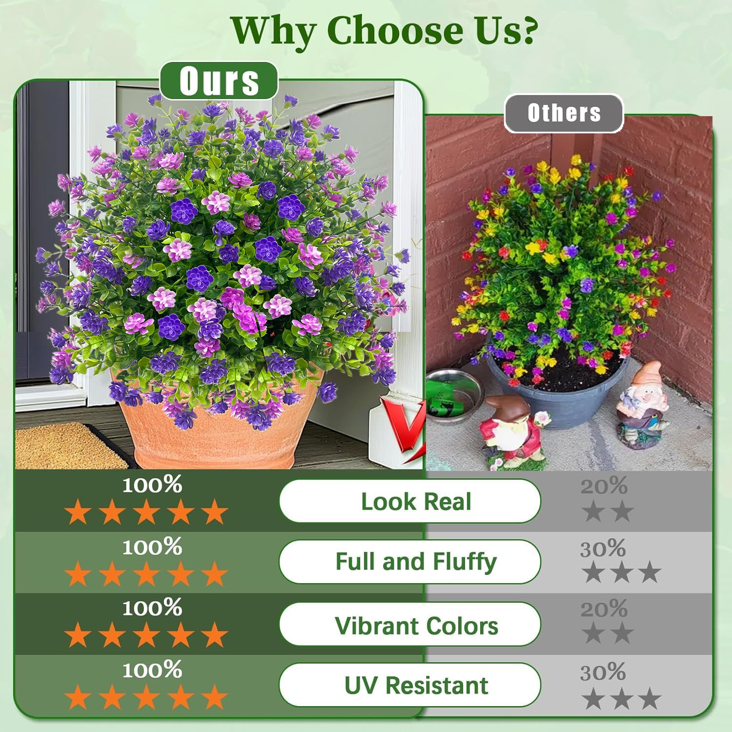 Realistic Fake Plants Bushes: Crafted with premium PE materials,UV-coated foliage maintains rich hues year-round-ideal for long-lasting spring outdoor arrangements.