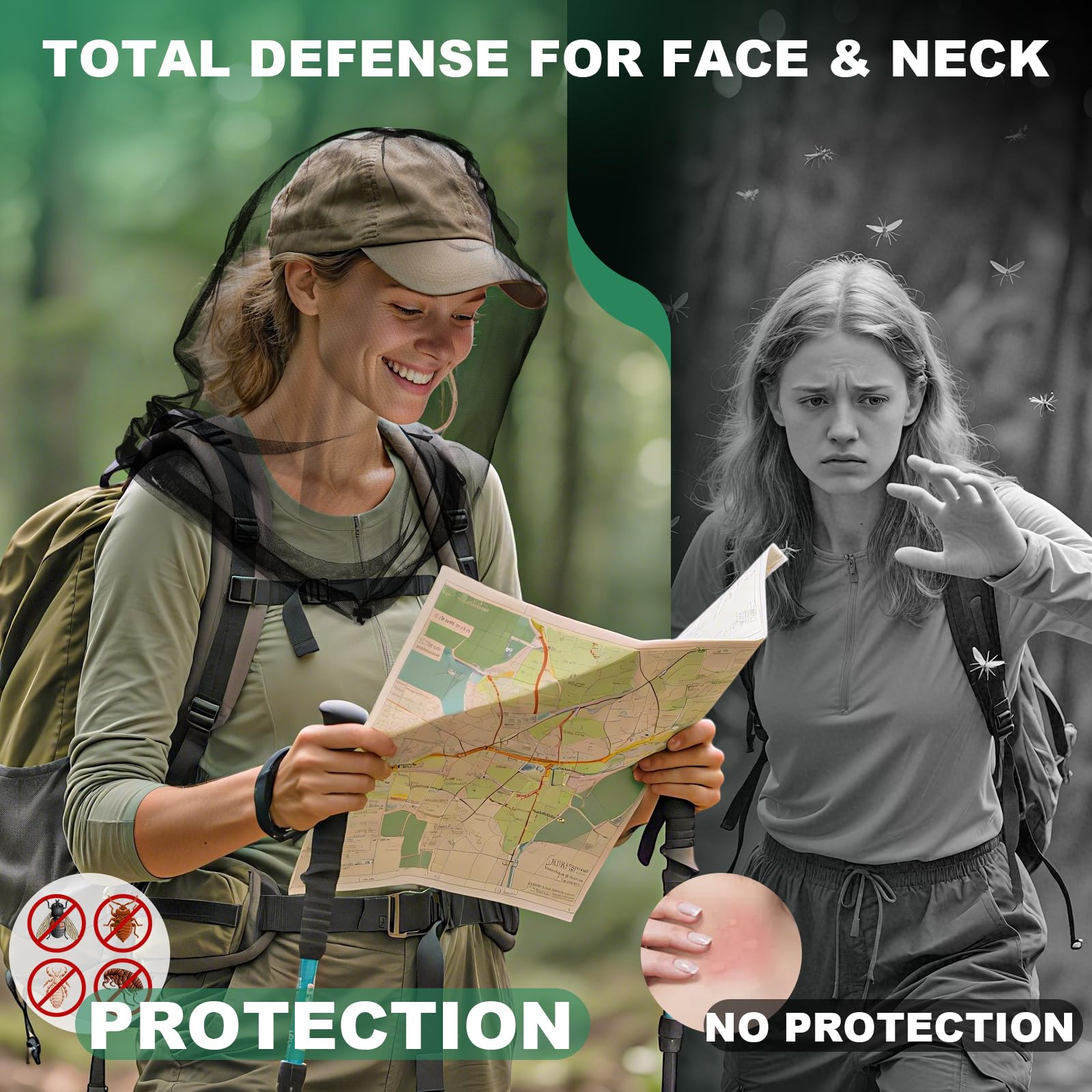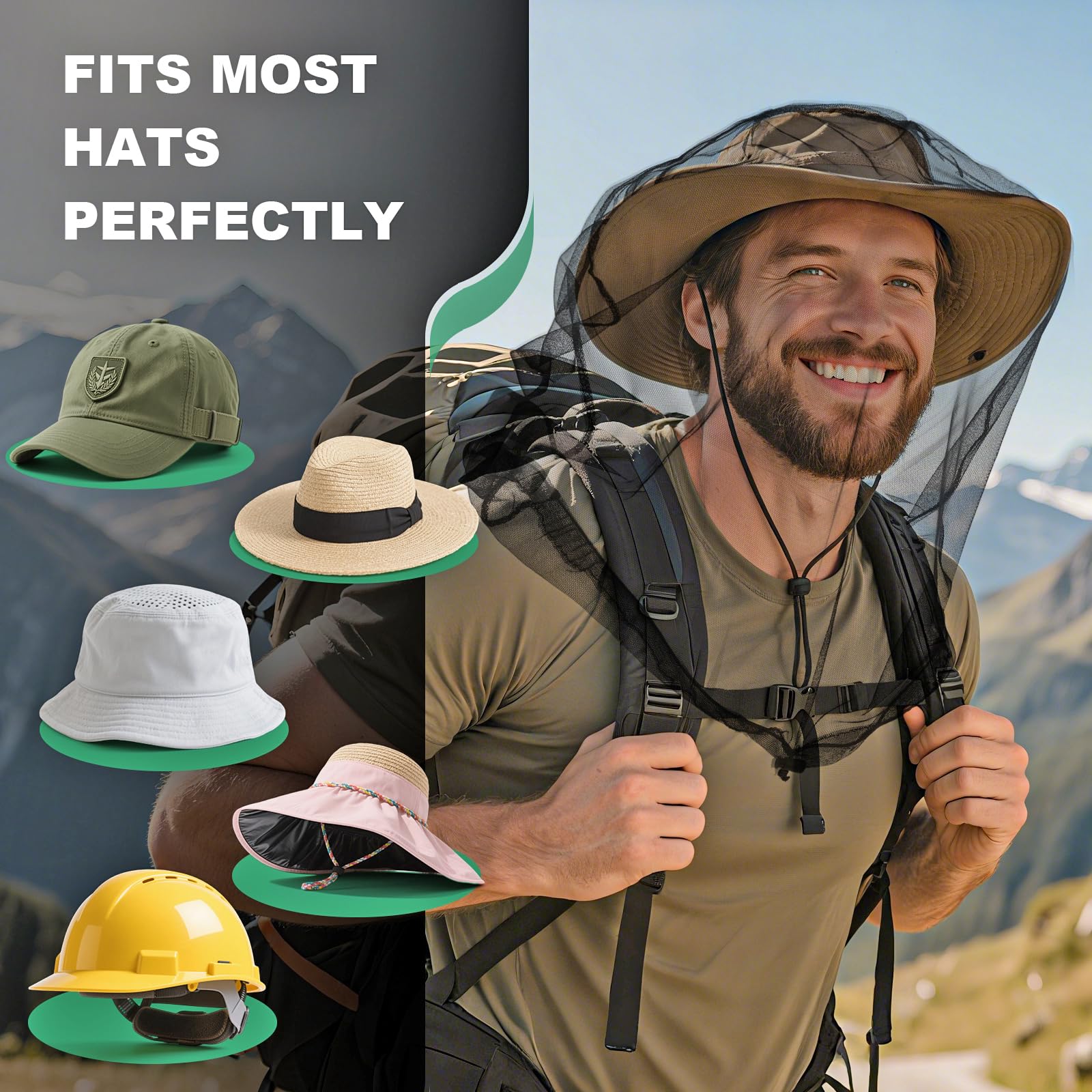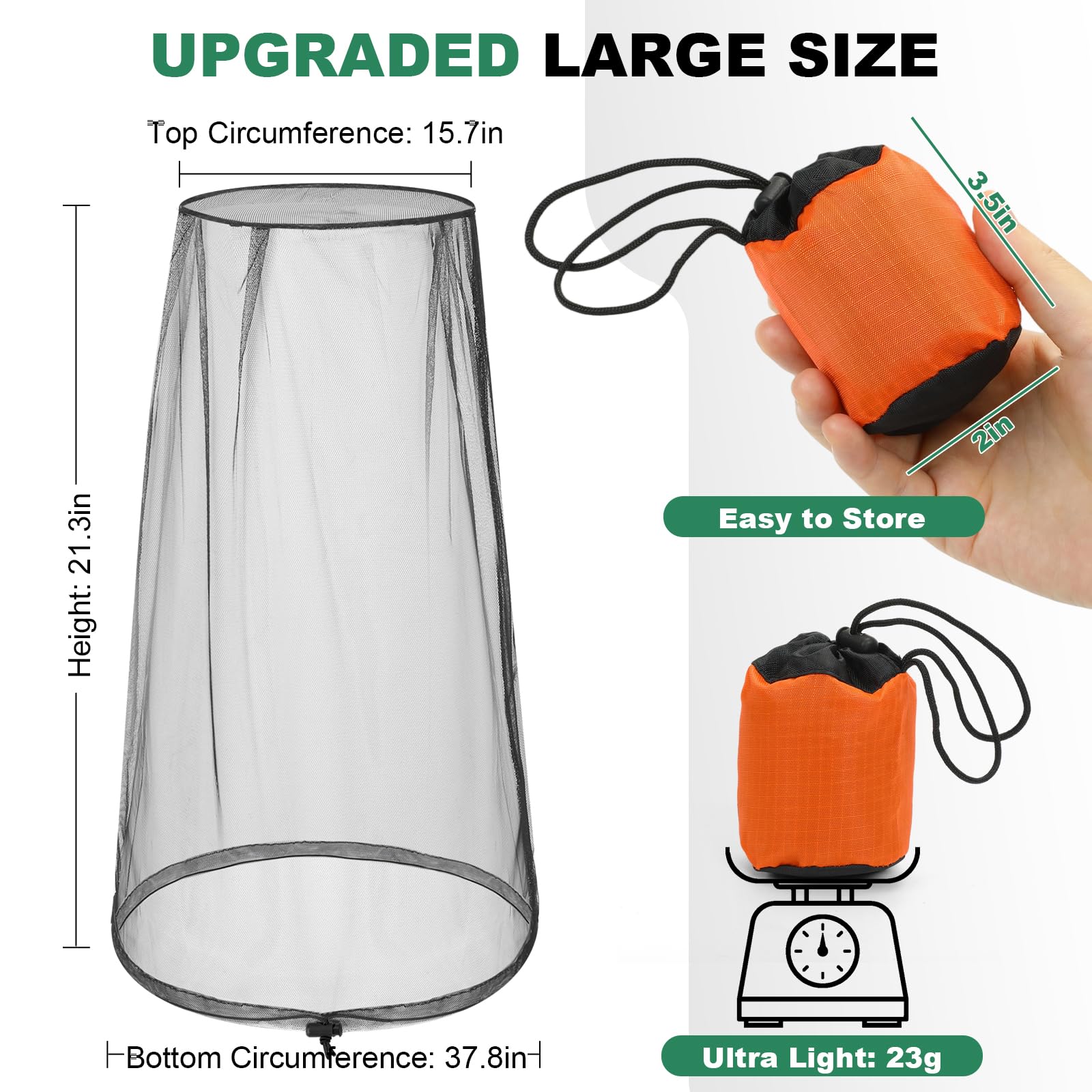 Updated Larger Size: The mosquito net for head measures 21.3" height, 37.8" bottom circumference, and 15.7" top circumference. The base features an adjustable drawstring design, providing comfortable coverage over most hats while delivering optimal face and neck protection