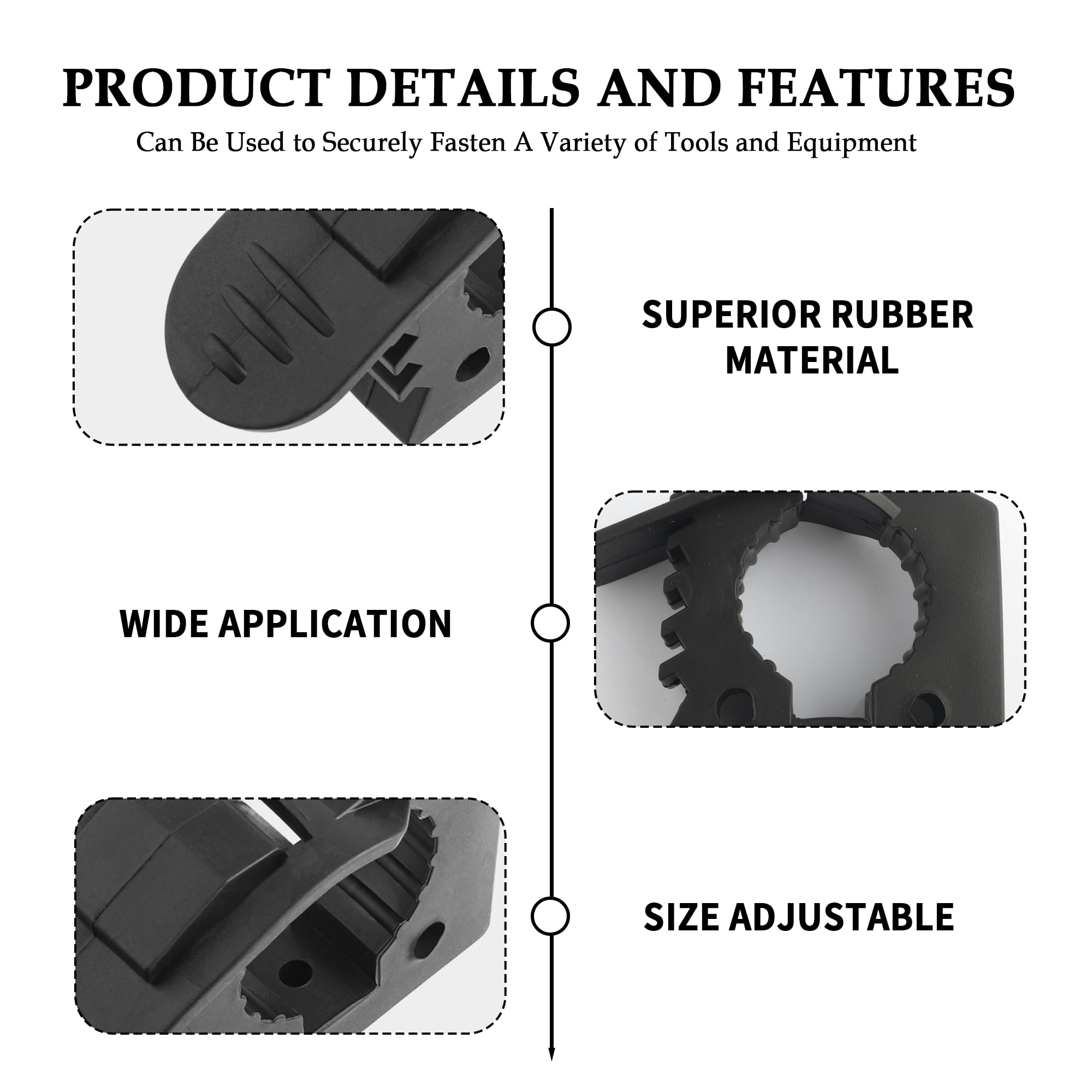 🔩 Size Adjustable: The rubber clamp mount kit is adjustable in size for securely holding tools and equipment with a diameter of 1 inch - 1.5 inches (25 mm - 38 mm), and also quick release when you need to use it. Please double check that the size is suitable for your tool or equipment before you purchase.
