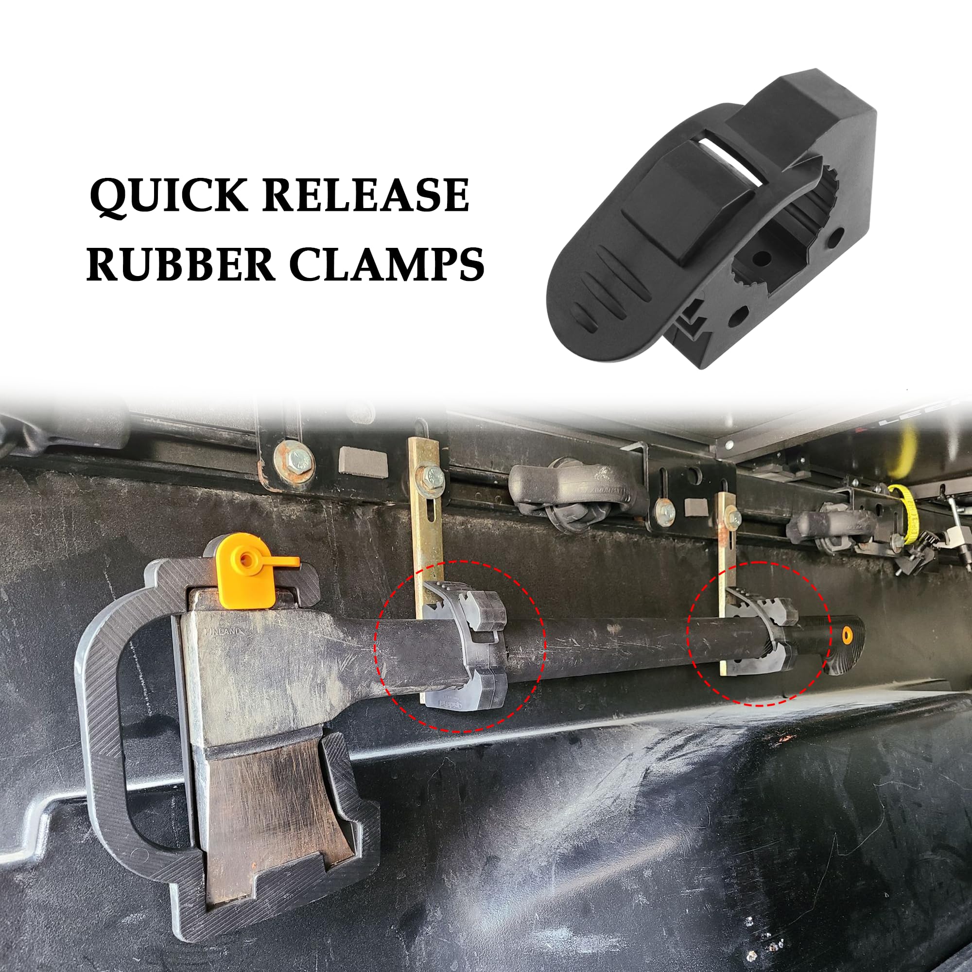 🔩 Easy to Install: Our shovel mounts are quick and easy to install, you just need to mount the rubber clamps to a flat surface by drilling holes and then fasten them with 3/16-inch screws or bolts. You can also mount the clamps to the round roll cage of your UTV, which provides even more space.