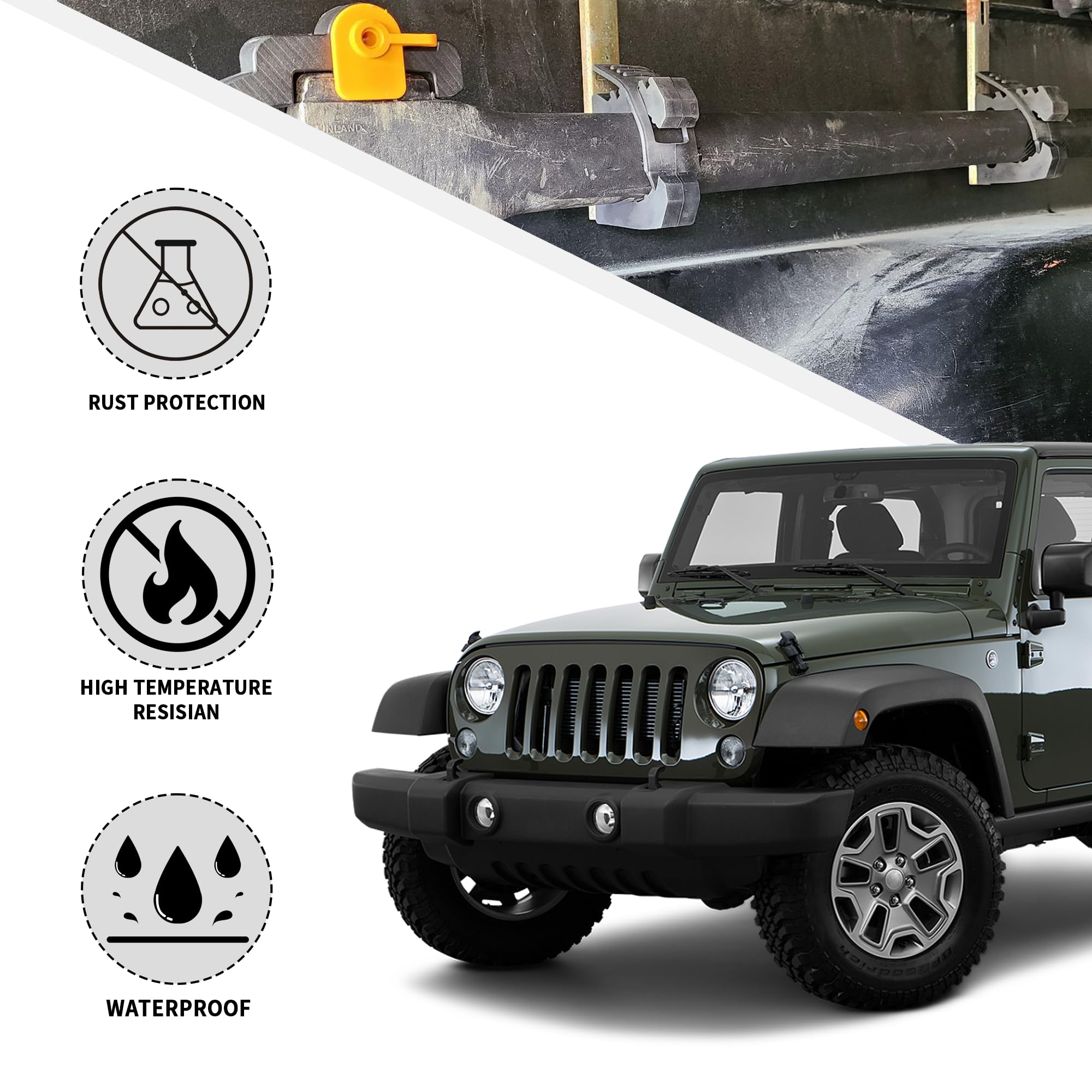 🔩 Wide Application: These quick release rubber clamps are suitable for most off-road vehicles, UTVs, ATVs, emergency vehicles, work trucks, race trailers, boats, etc. on the market, which has a wide range of applications and is especially suitable for use on the sea, which is not easy to be affected by seawater and rust.