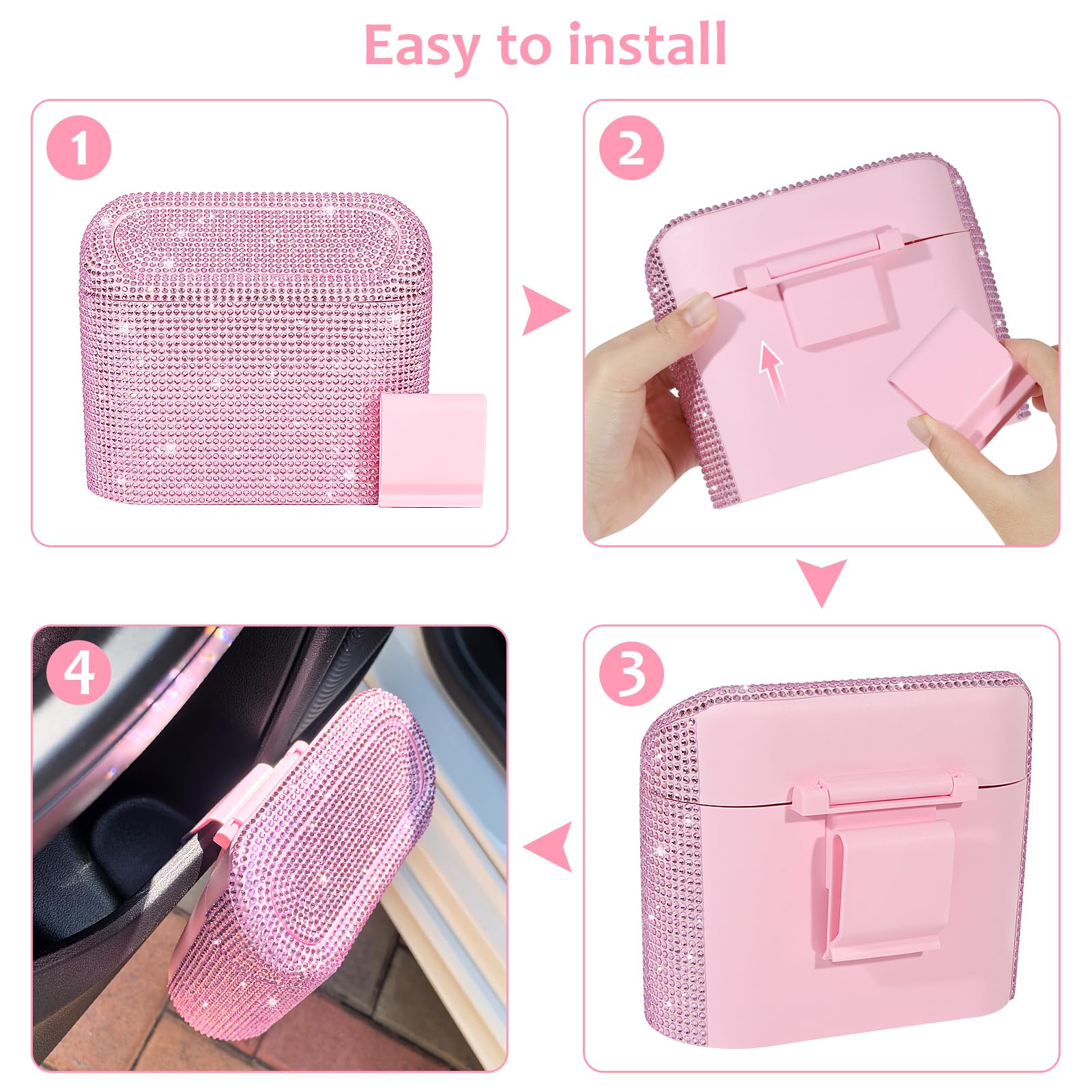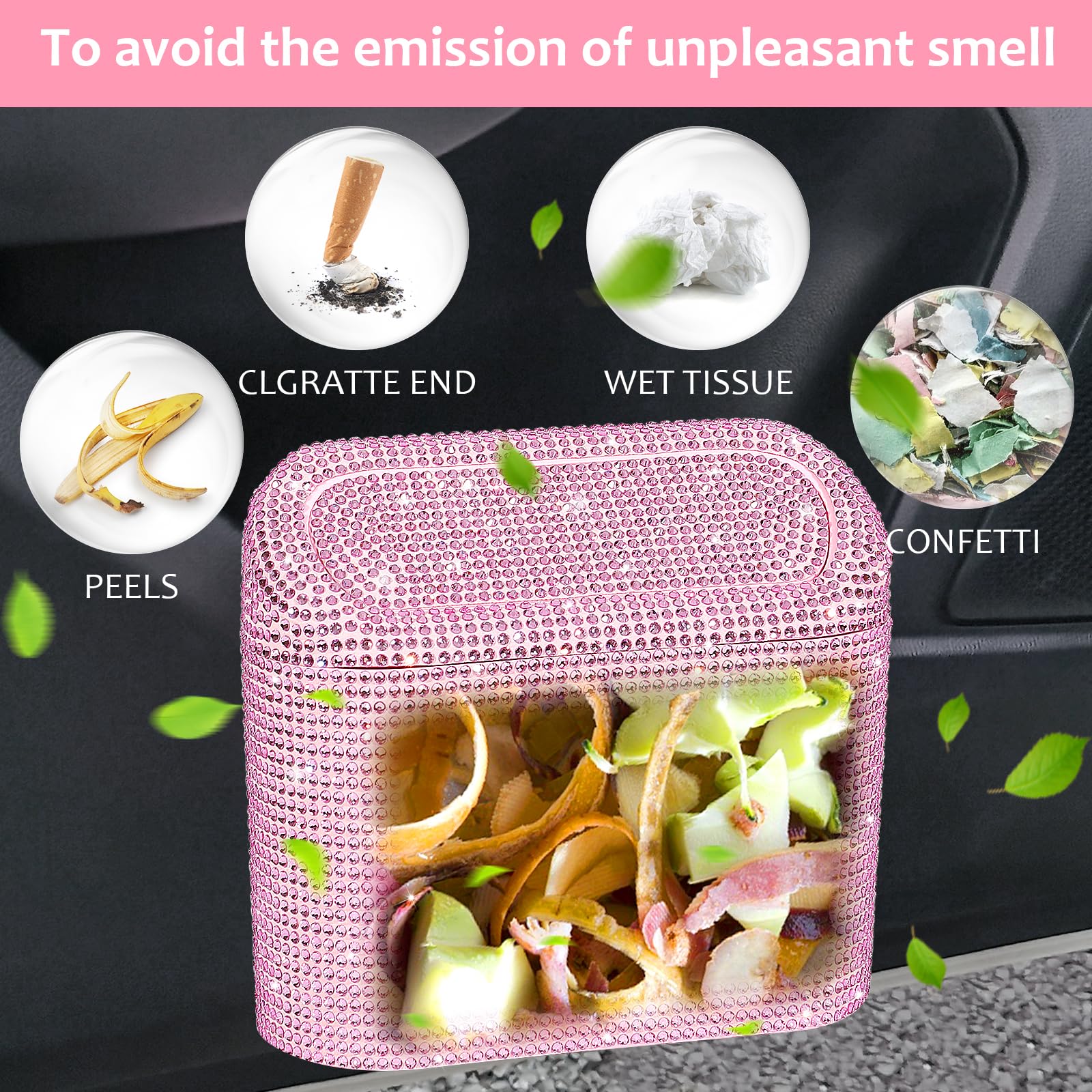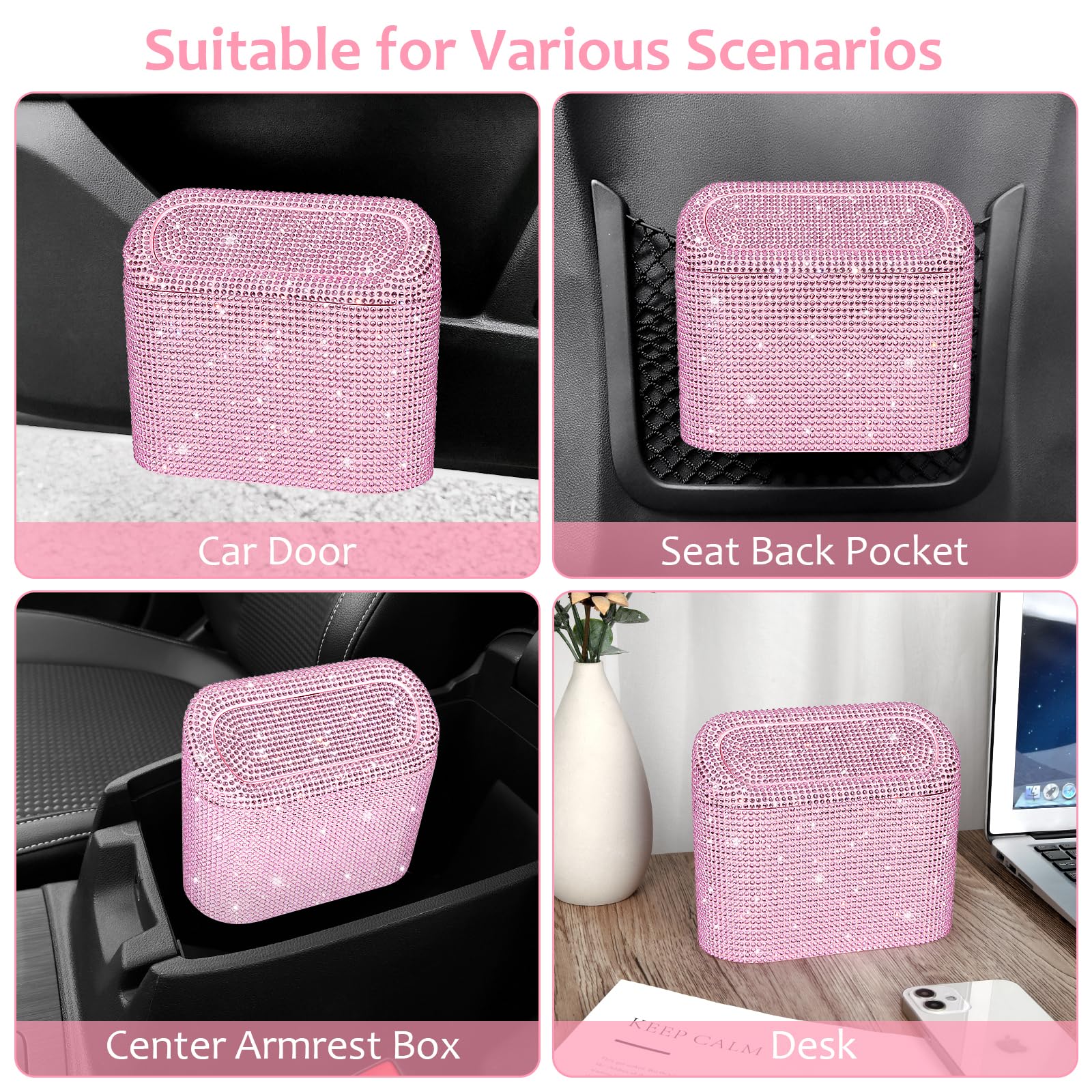 Suit for Any Vehicle: This bling rhinestone covered trash can with perfect size fit for most type of vehicle, such as cars, trucks, minivans, SUVs, RVs, boats, cabs and more