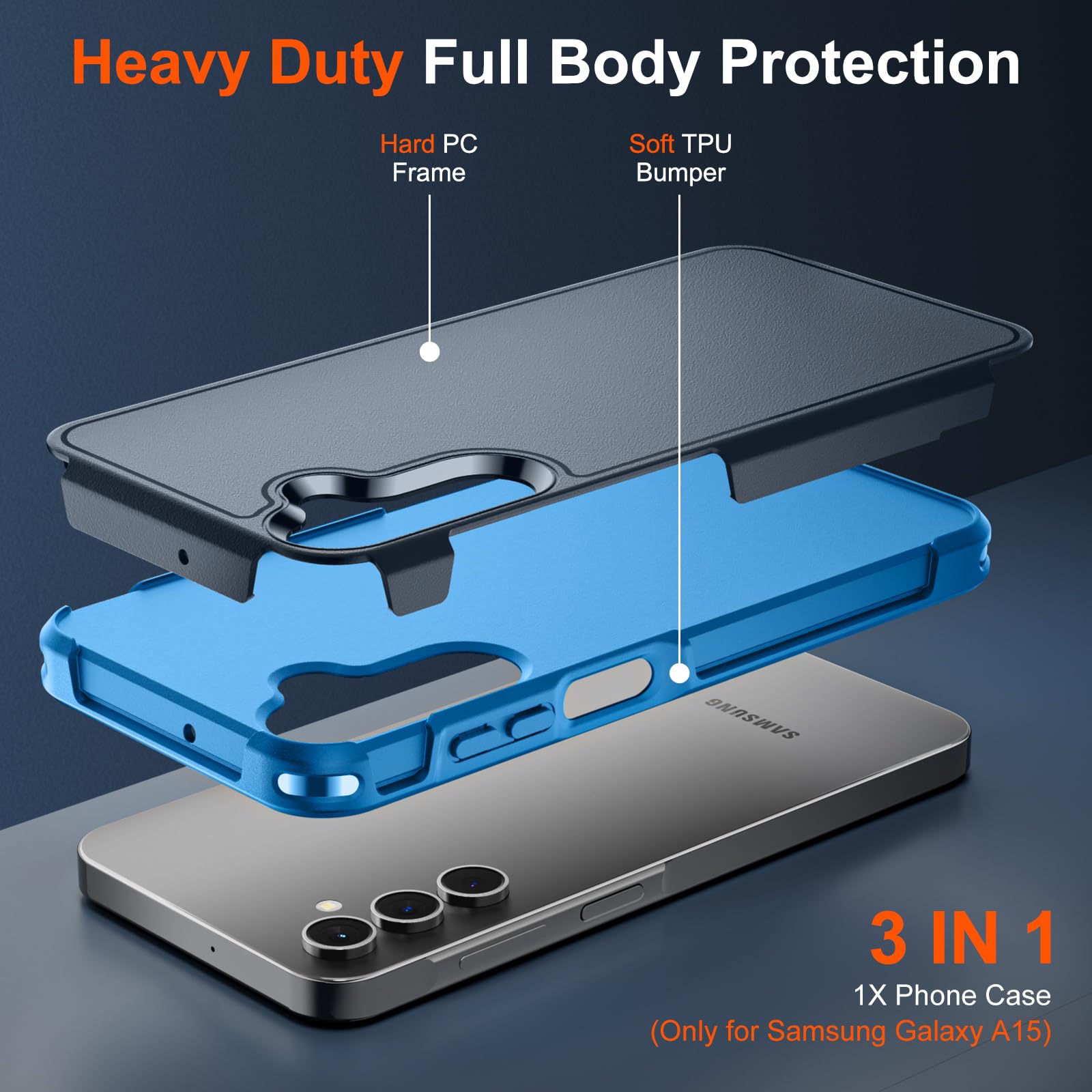Dual-Layer Design: This for Samsung Galaxy A15 case is made of hard back PC and soft TPU inner cover, TPU bumper with built-in 4-corner shockproof airbags, impact and scratch resistant, provides great protection for the phone