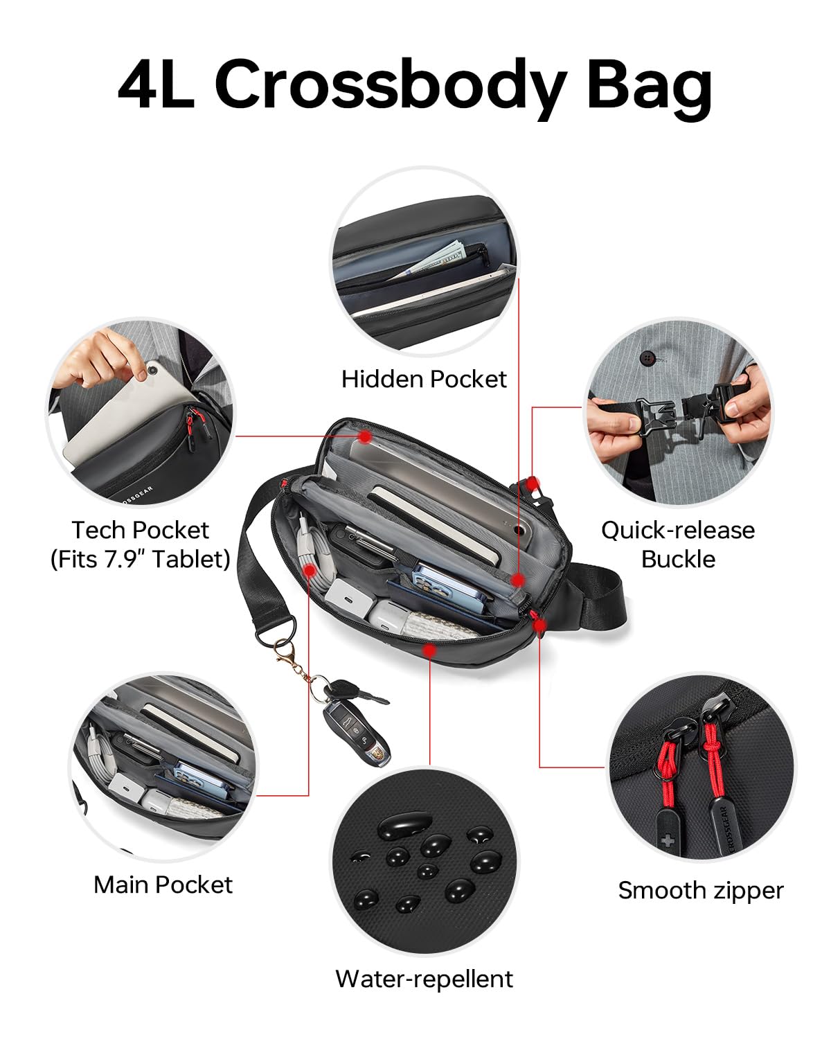 【Lightweight Sling Bag for Flexible Carry】The set includes a detachable sling bag that can be quickly converted into a crossbody bag and waist bag in seconds with its quick‑release buckle.Perfect as a standalone sling bag for daily use or as a handy front pocket for your main backpack, it offers ultimate flexibility.