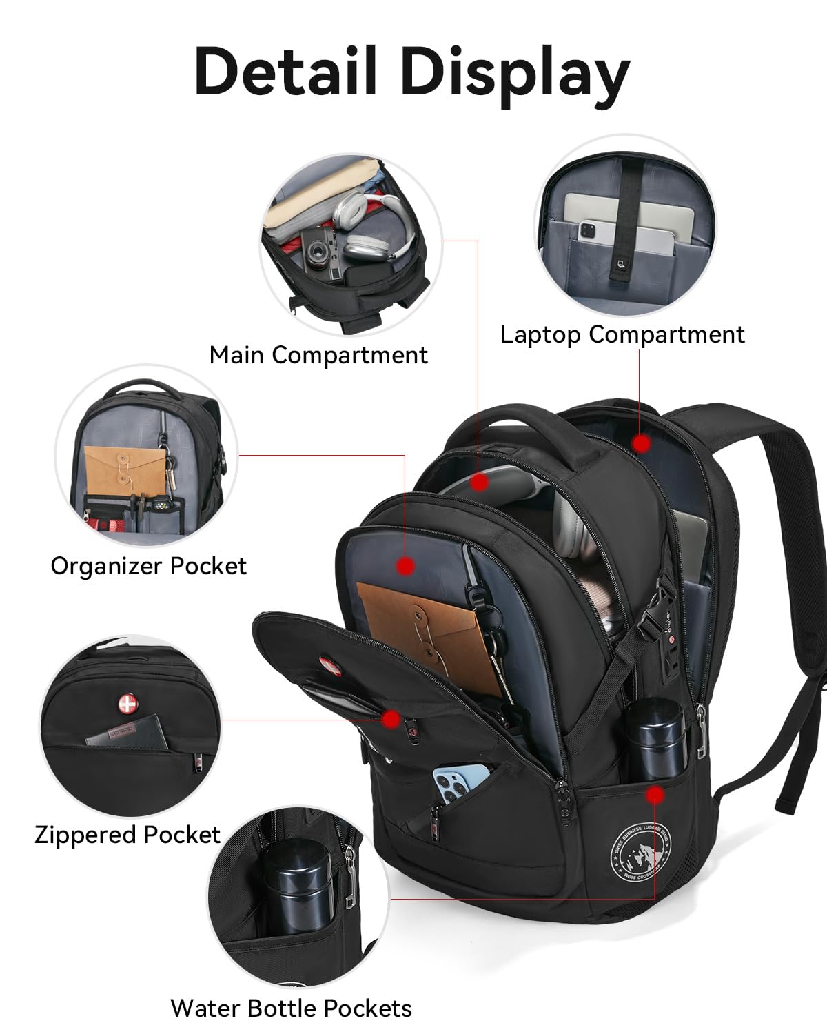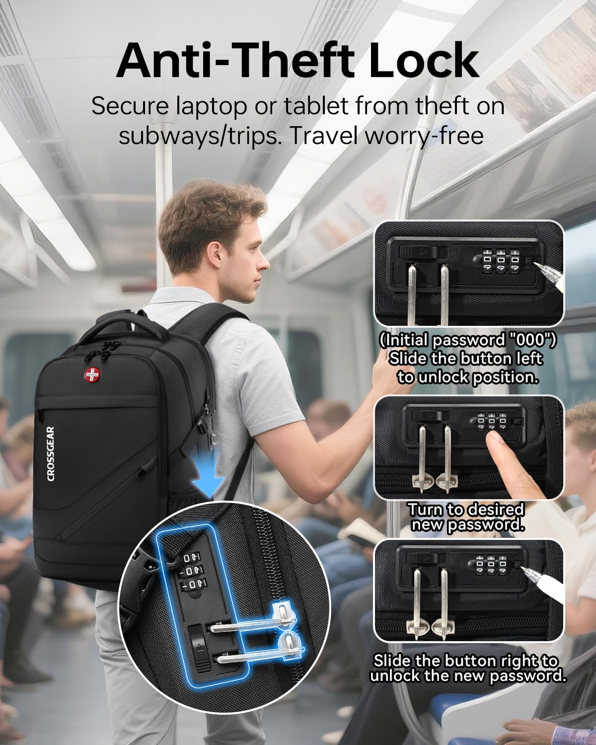 【Lockable & Anti-Theft Pocket】With the anti-theft combination lock on the laptop compartment. A hidden anti-theft pocket against the back keeps passports and wallets safe in crowded spaces.
